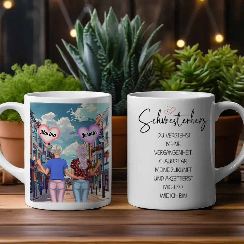 Diese personalisierte Tasse Basic ist perfekt für Schwestern .Also perfekt zum Geburtstag, zu Weihnachten oder einfach als nette Aufmerksamkeit .
