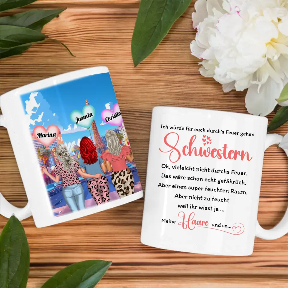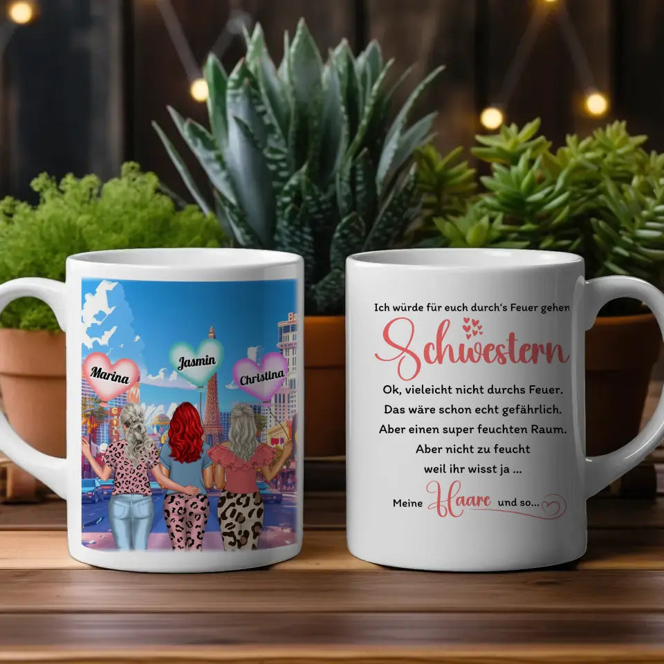 Unsere Schwesterherz Tasse Durchs Feuer gehen Schwestern Rot Altstadt Italien