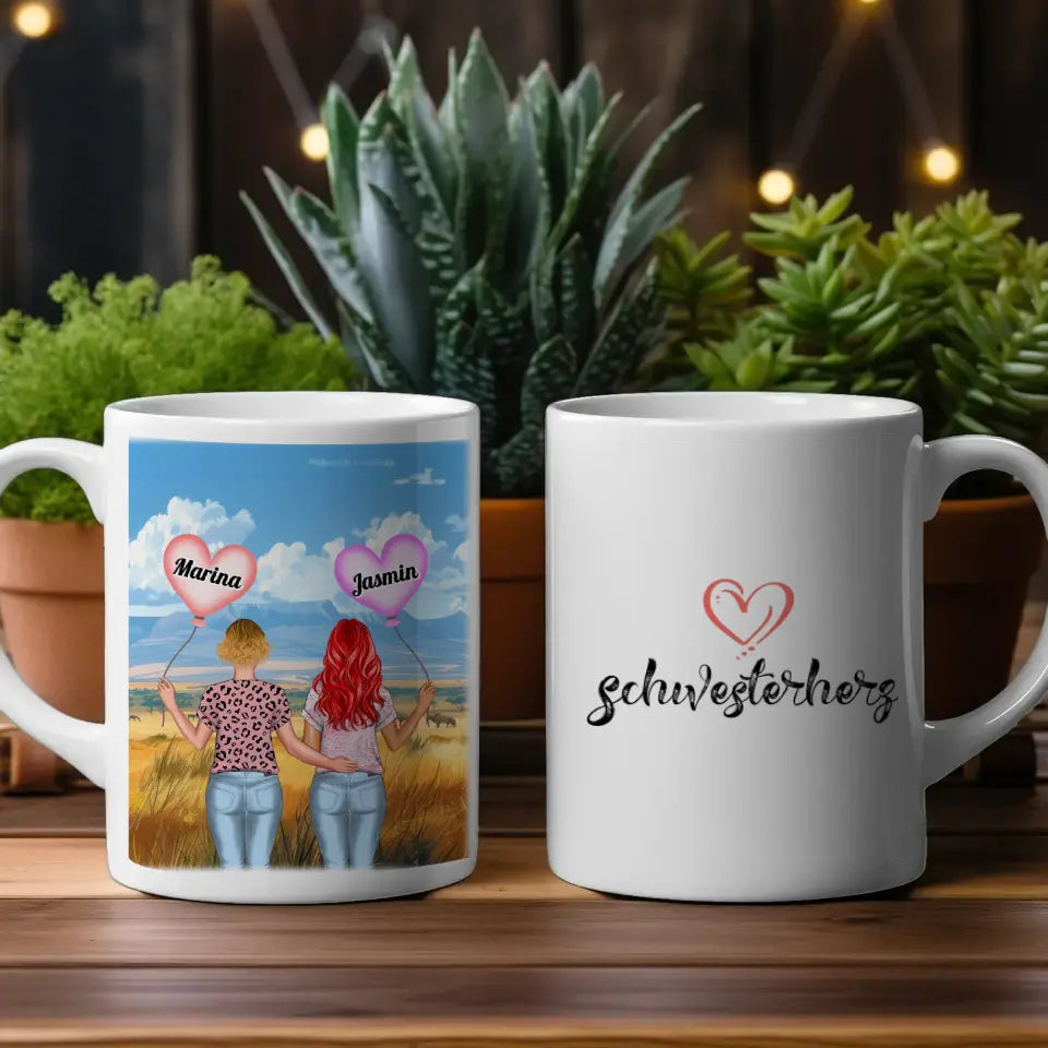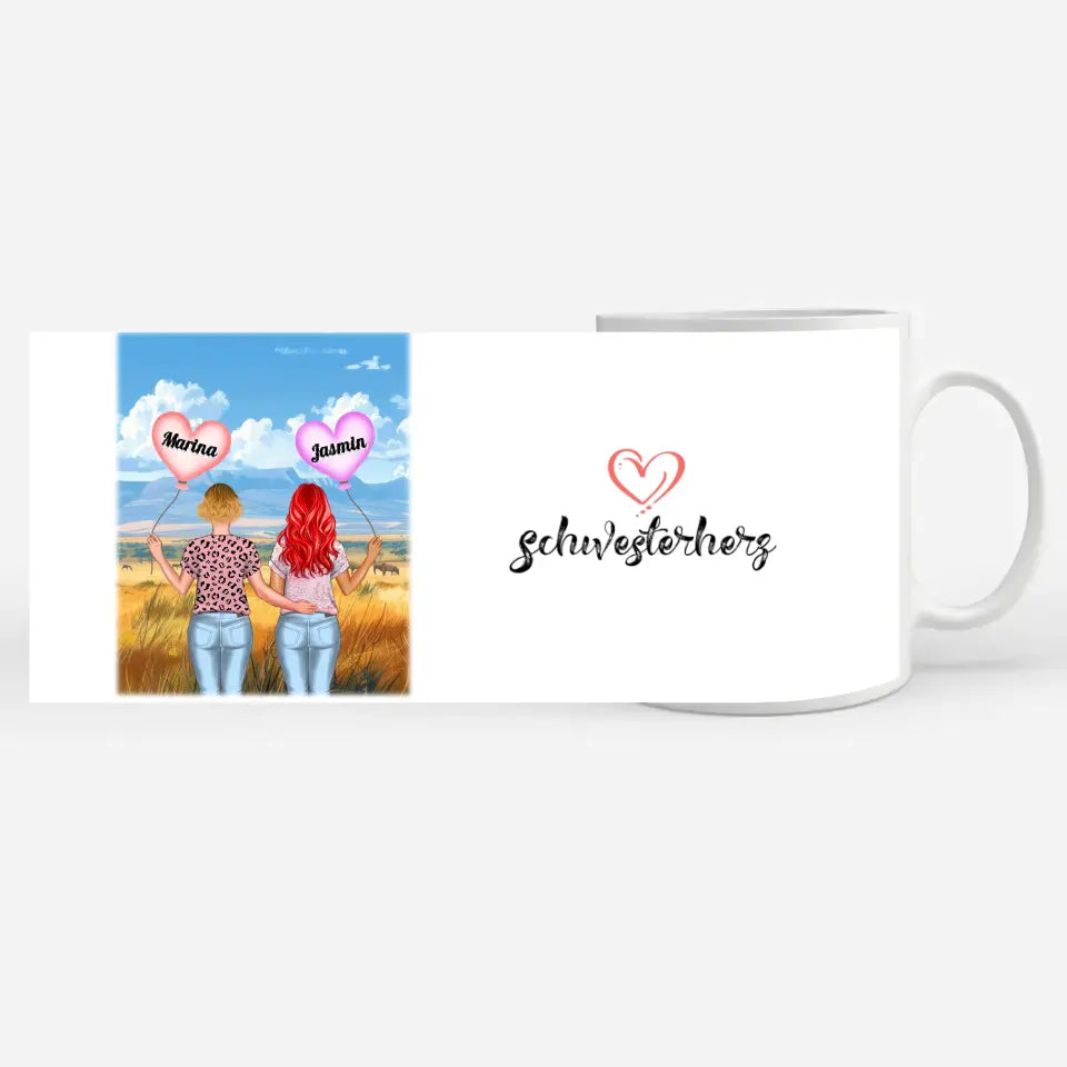 Diese personalisierte Tasse Basic ist perfekt für Schwestern .Also perfekt zum Geburtstag, zu Weihnachten oder einfach als nette Aufmerksamkeit .