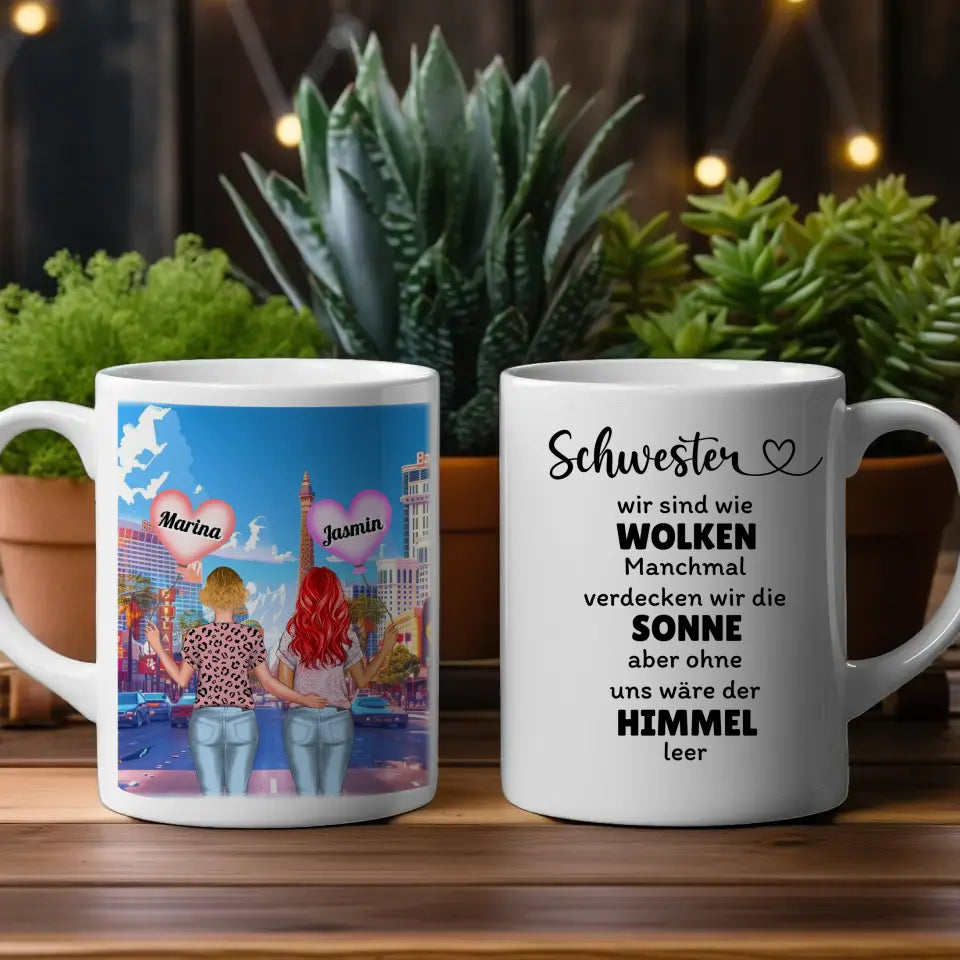 Du möchtest etwas einzigartiges verschenken? Dann ist Unsere Schwesterherz Tasse Schwestern sind wie Wolken Italienein richtig schönes personalisiertes Geschenk.
