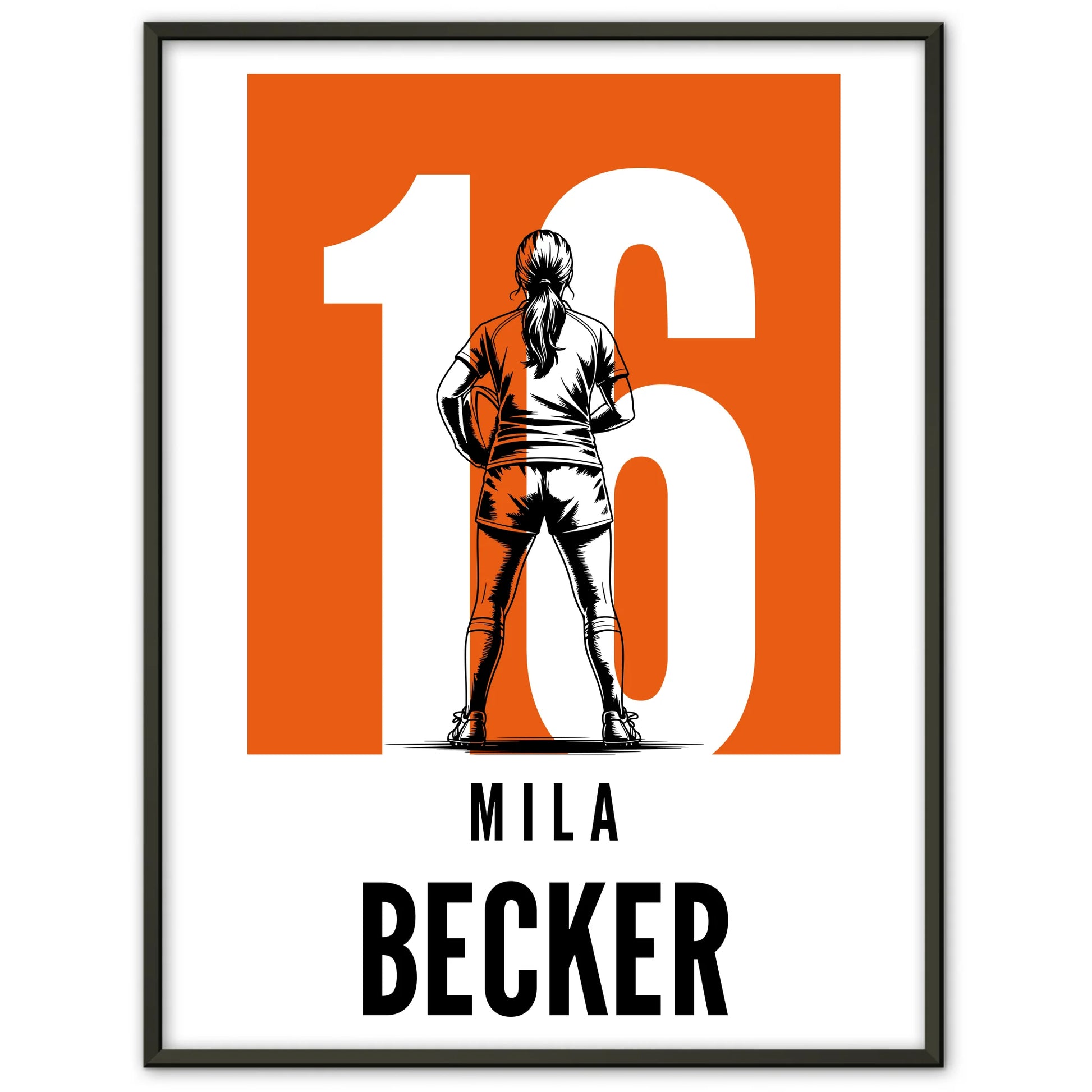 Sport Poster Rugby Rugbyspielerin Geschenk für Mädchen Turnier Urkunde