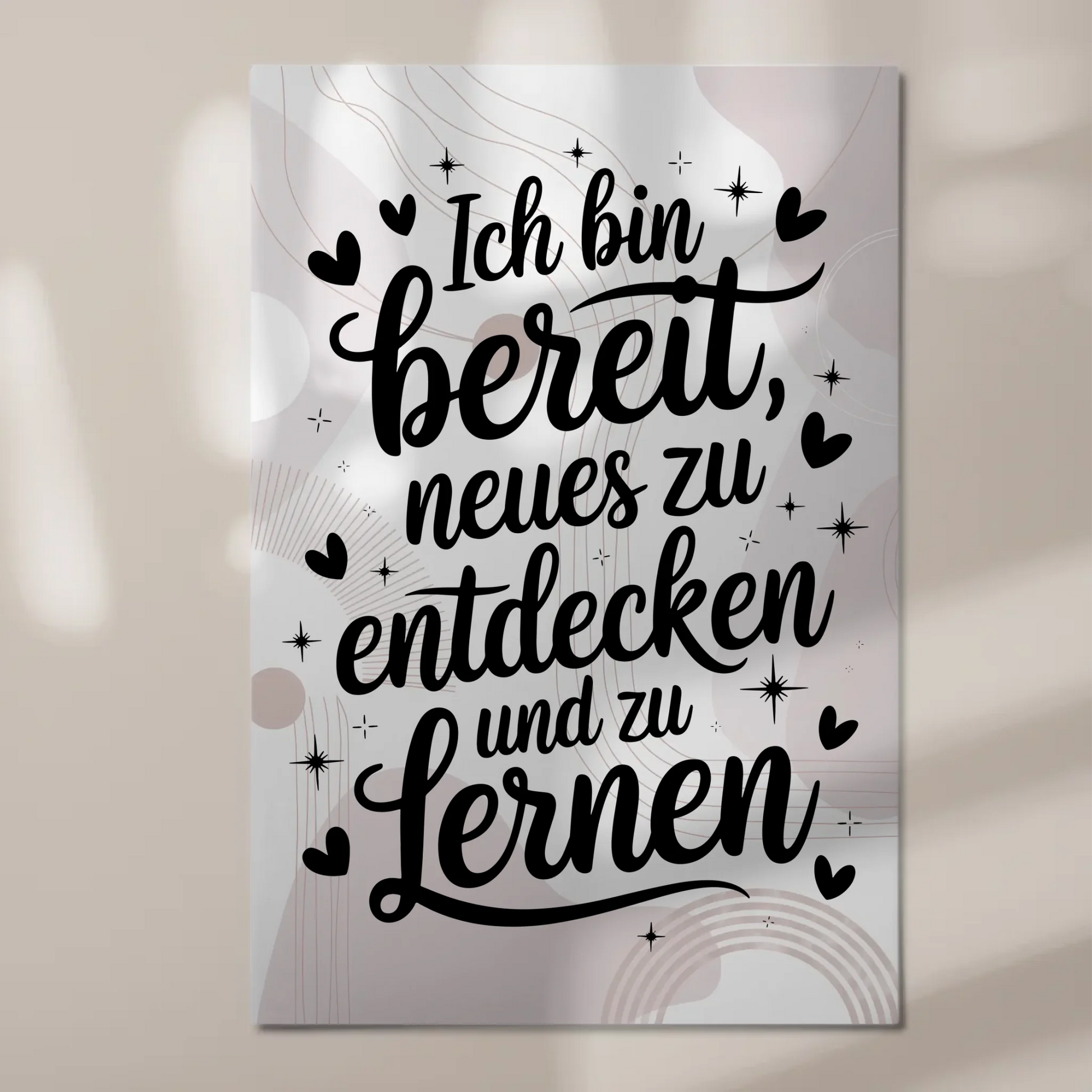 Unser Affirmations Magnet Poster Fotoboard ist mehr als nur ein dekoratives Element – es ist eine tägliche Erinnerung daran, dass du bereit bist, Neues zu entdecken und zu lernen. Der schöne Spruch 'Ich bin bereit, Neues zu entdecken und zu lernen' wird dich positiv durch den Tag begleiten und dir die nötige Motivation geben.