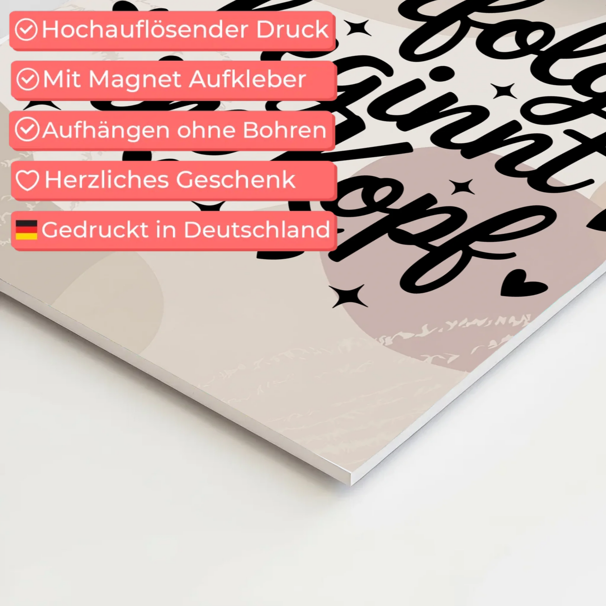 Spruch Fotoboard Magnet Wandbild Erfolg beginnt im Kopf