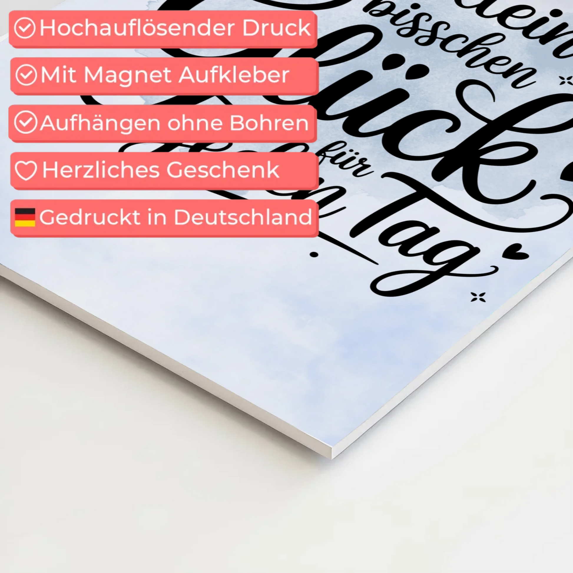 Spruch Fotoboard Magnet Wandbild - Glück für jeden Tag