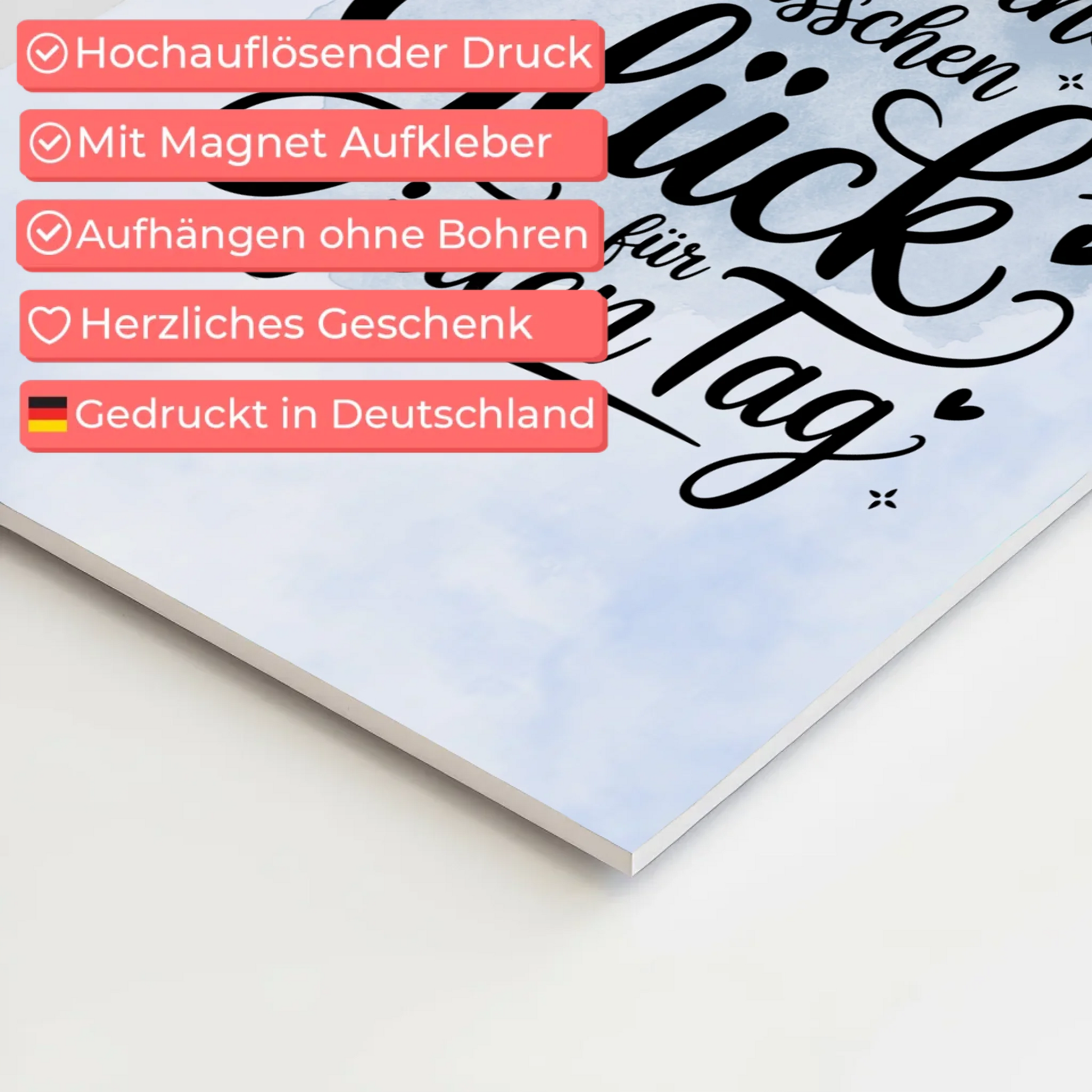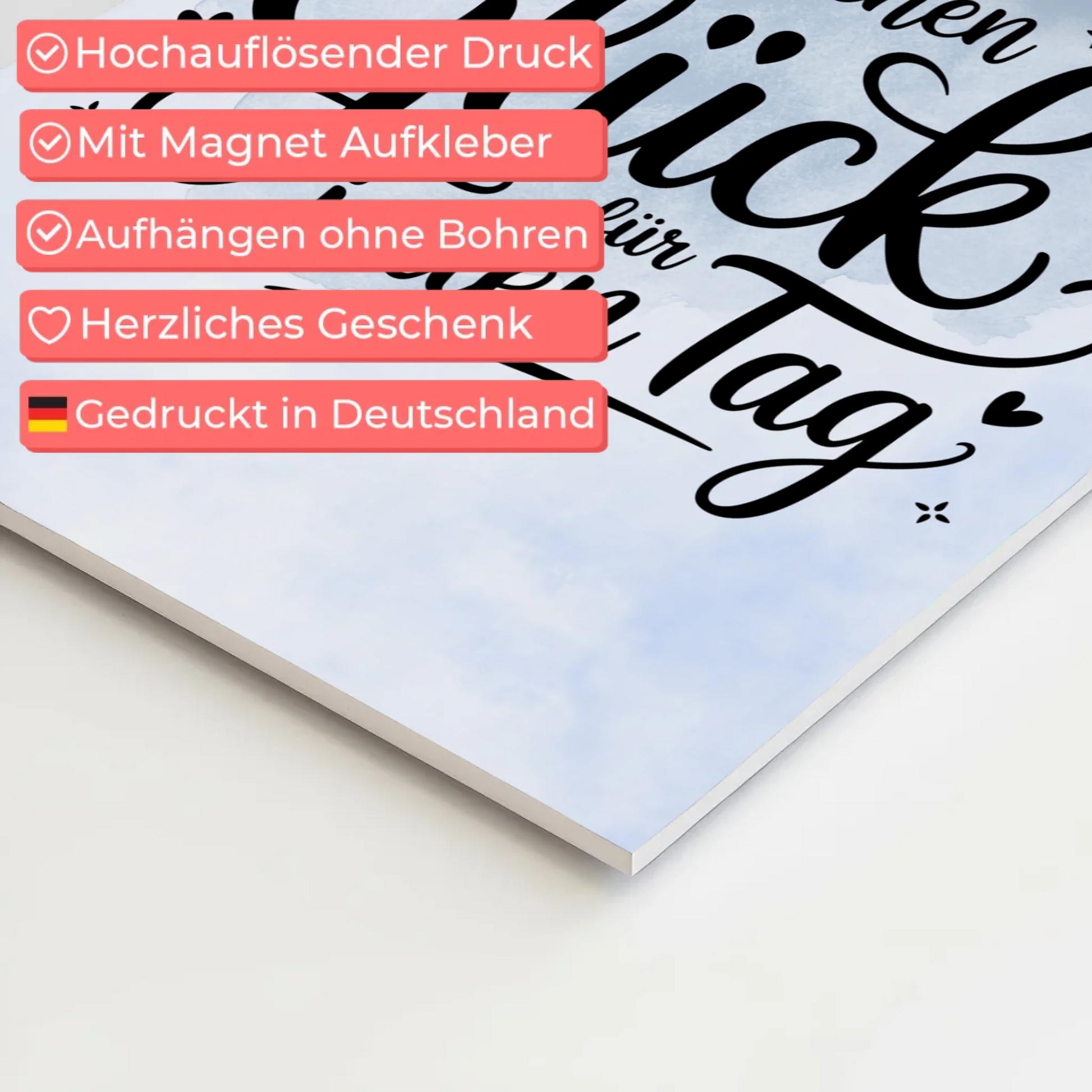 Entdecke das perfekte Geschenk für jeden Anlass: das Spruch Fotoboard Magnet Wandbild - Glück für jeden Tag. Dieses einzigartige Produkt kombiniert stilvolle Dekoration mit persönlicher Note und bringt ein kleines bisschen Glück in deinen Alltag. Gestalte dein eigenes Magnet Poster Fotoboard Mit Spruch, indem du das Hintergrundbild nach deinem Geschmack personalisierst.