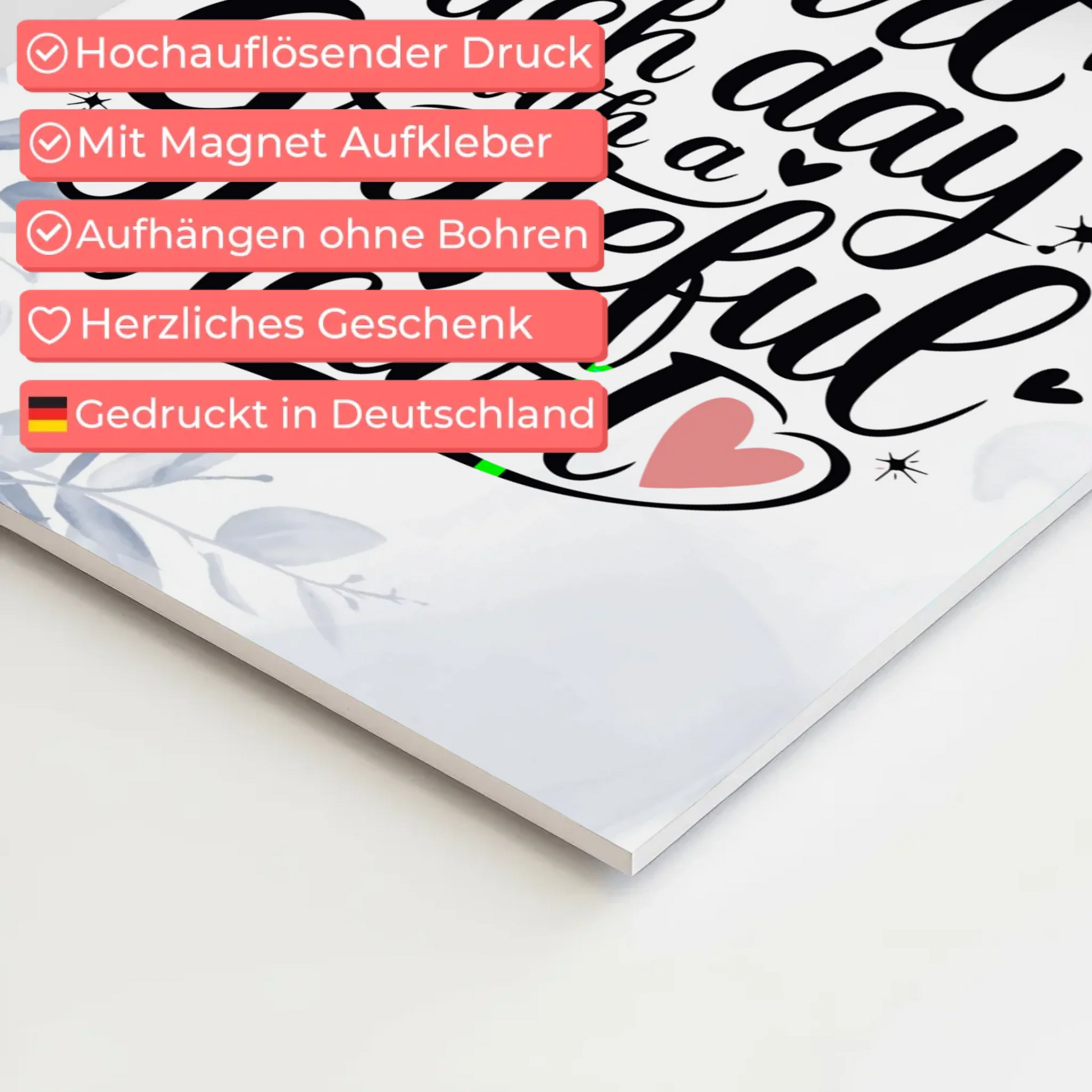 Spruch Fotoboard Magnet Wandbild Start Each Day Herz