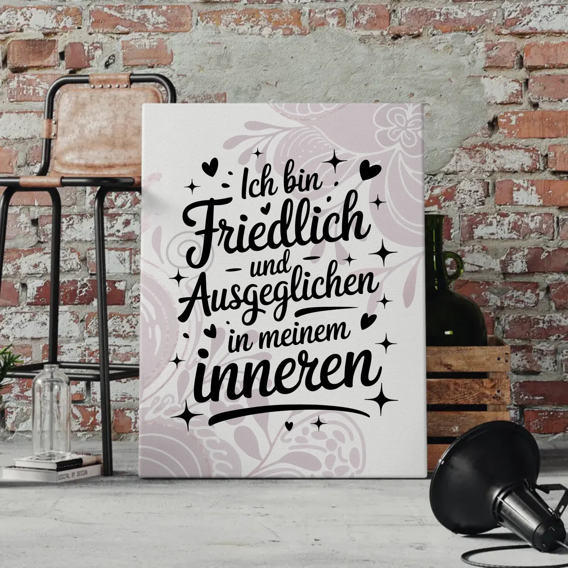 Spruch Leinwand Affirmation Ich bin friedlich und ausgeglichen