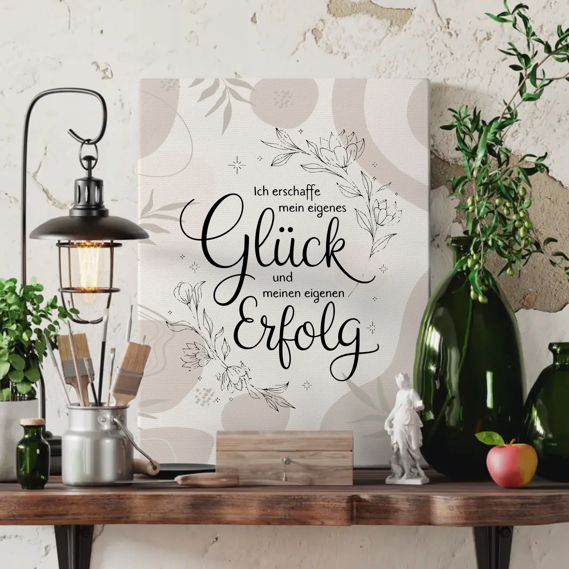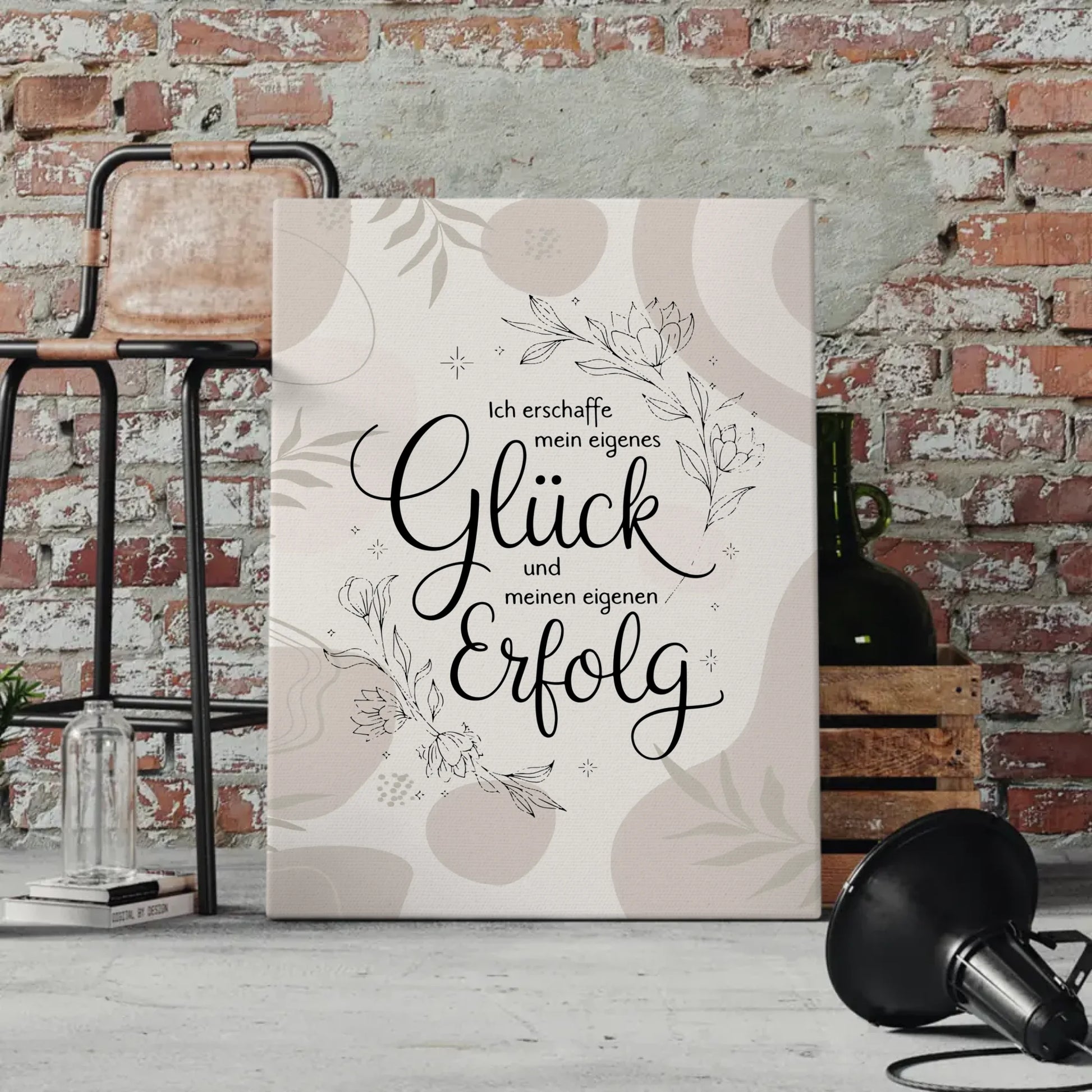 Spruch Leinwand Affirmation – Ich erschaffe mein eigenes Glück positiv