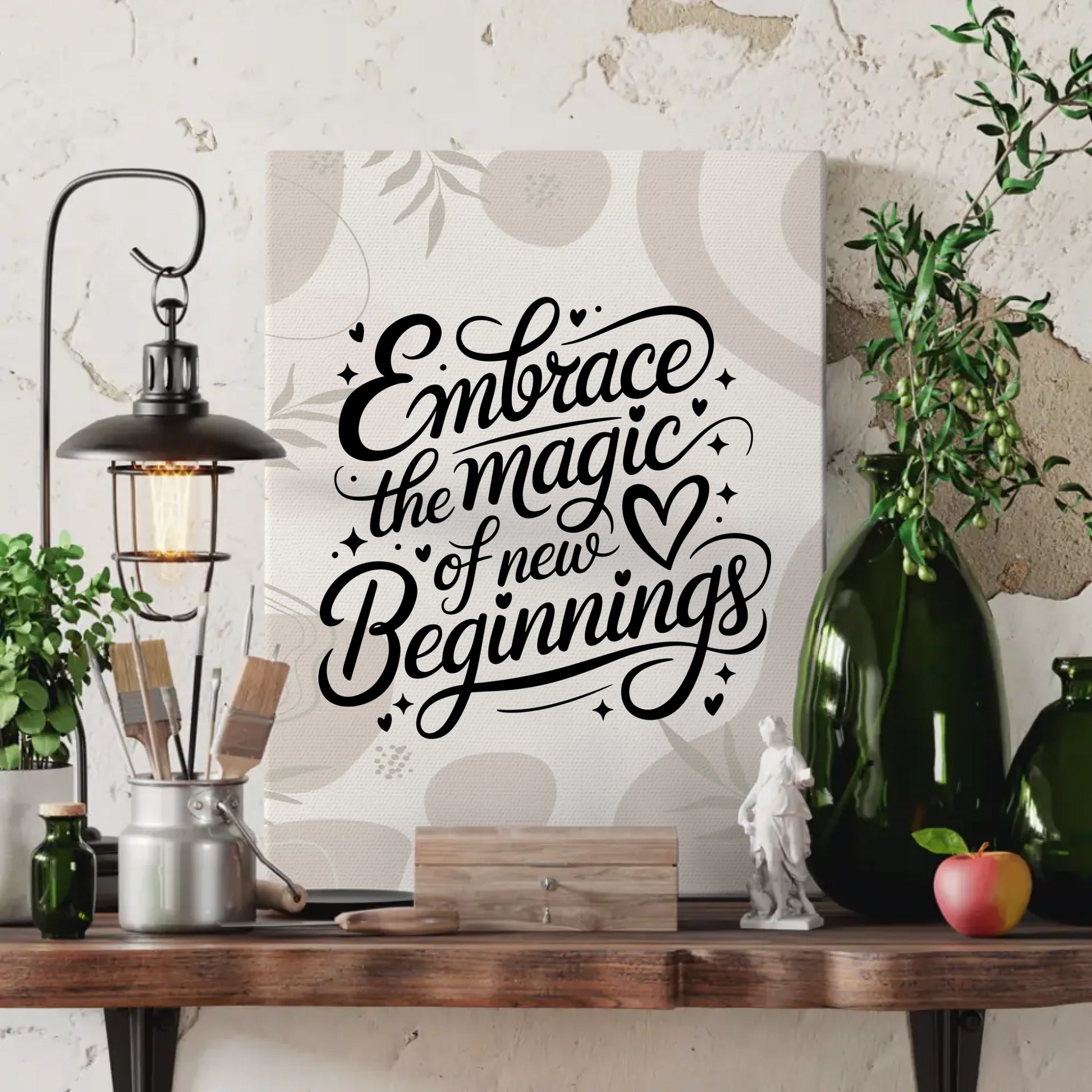 Spruch Leinwand Embrace the magic of new beginnings Geschenk