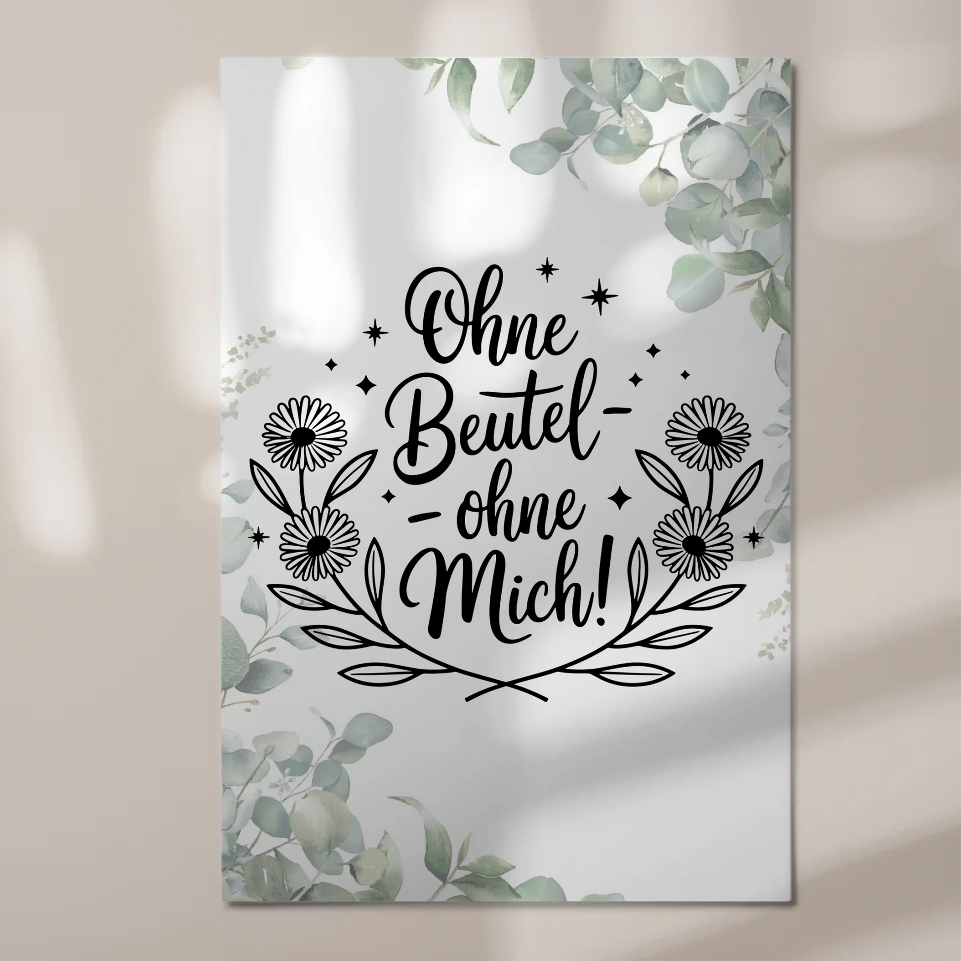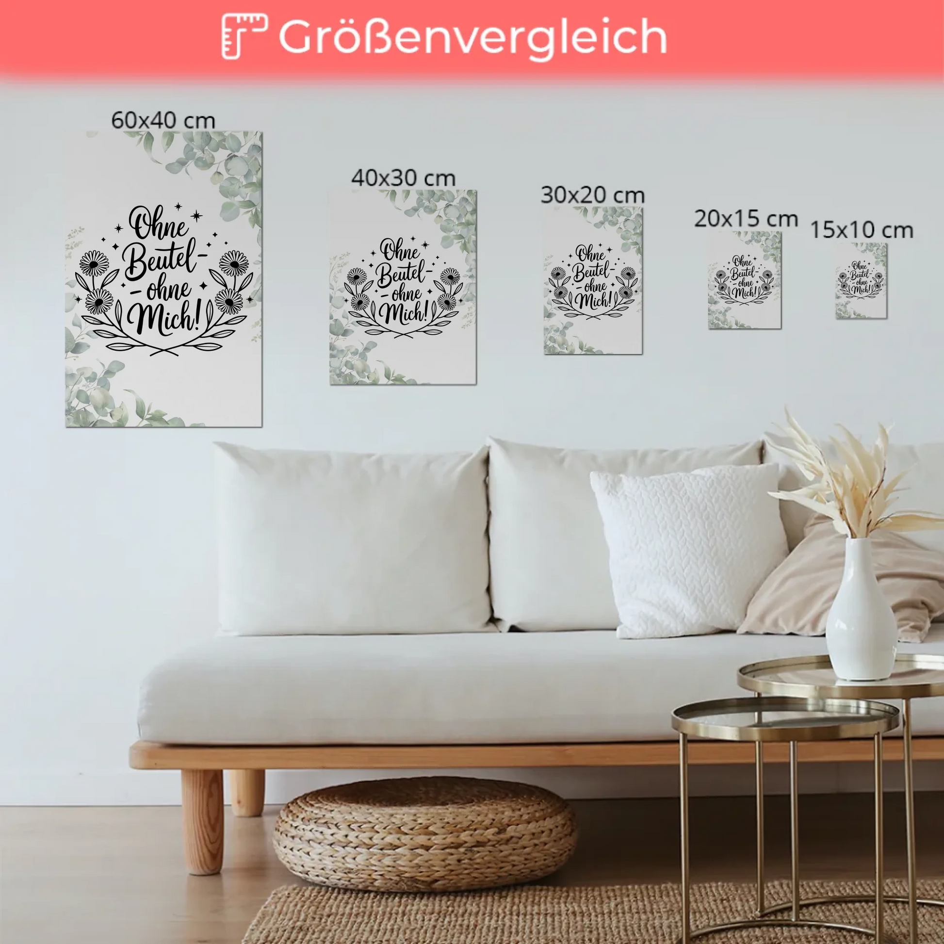 Lass deiner Kreativität freien Lauf und gestalte ein individuelles SpruchMagnet Poster Fotoboard, das genau zu dir passt. Mit dem Slogan 'Ohne Beutel - ohne mich!“ setzt du ein Statement und bringst gleichzeitig Stil in deine vier Wände.