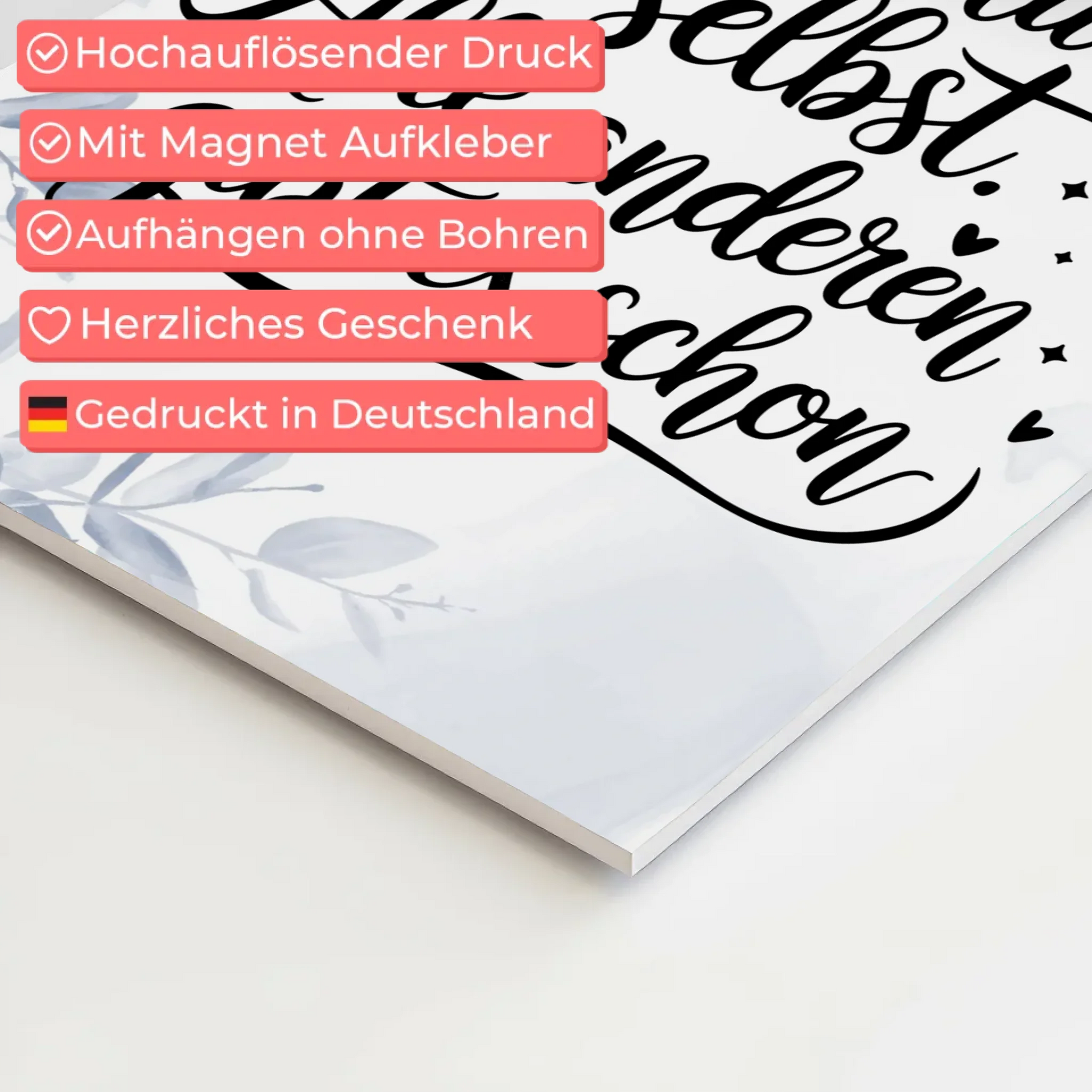 Entdecke das einzigartige Sprüche Poster Magentisch - Sei du selbst Geschenkidee, das perfekt für jeden Anlass geeignet ist. Dieses personalisierbare Magnet Poster Fotoboard Mit Spruch bietet dir die Möglichkeit, den Hintergrund nach deinen Wünschen zu gestalten und so ein individuelles Kunstwerk zu schaffen. Ob als inspirierendes Dekor für dein Zuhause oder als besonderes Geschenk für einen lieben Menschen – mit diesem Magnet Poster Fotoboard Spruch liegst du immer richtig.