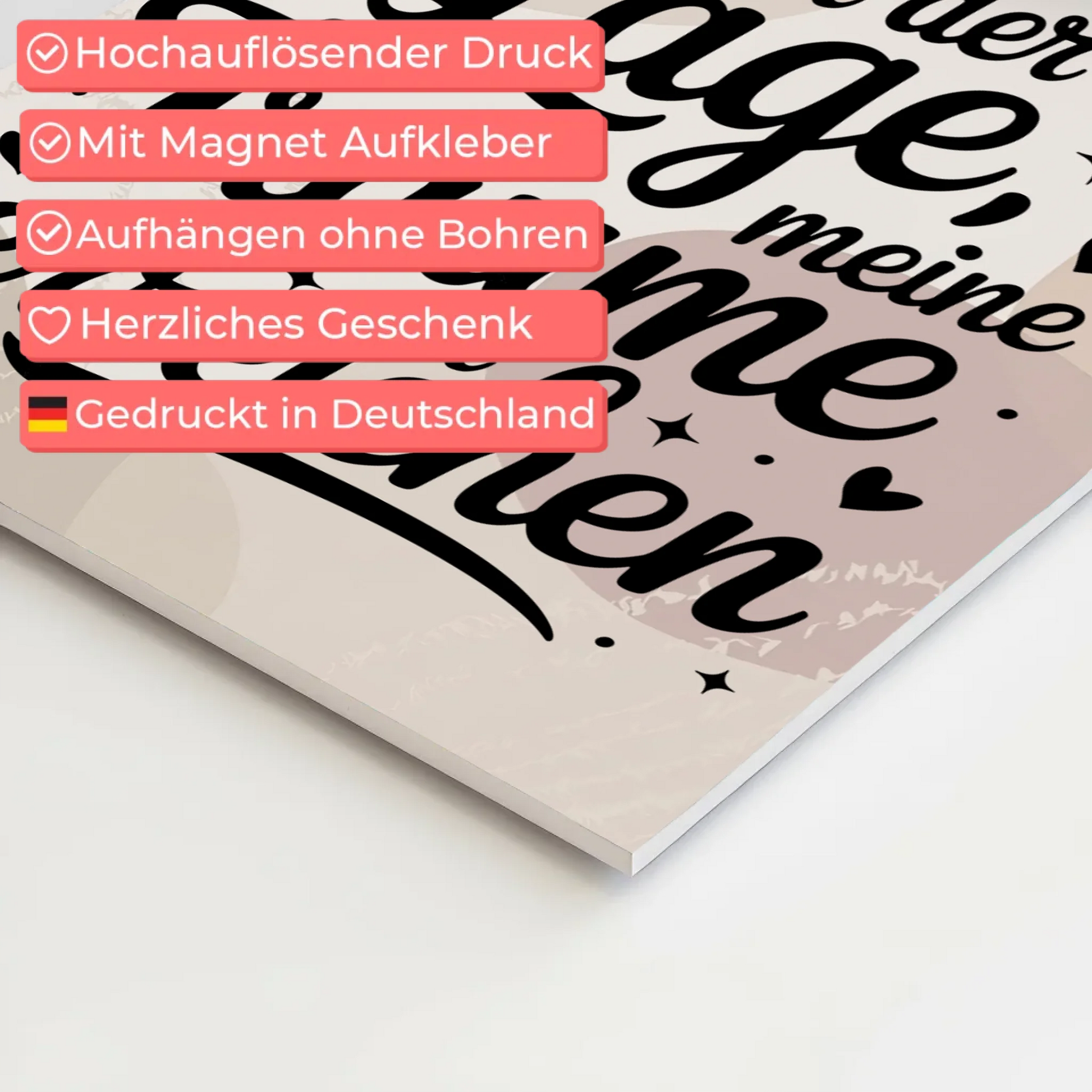 Entdecke das perfekte Geschenk für jeden Anlass: unser Sprüche Poster Magnetisch Affirmation Träume Erreichen. Dieses einzigartige Produkt kombiniert inspirierende Sprüche mit der Möglichkeit, es ganz nach deinem Geschmack zu personalisieren. Wähle ein Hintergrundbild, das deine Persönlichkeit widerspiegelt und mache dieses Poster zu einem echten Unikat.