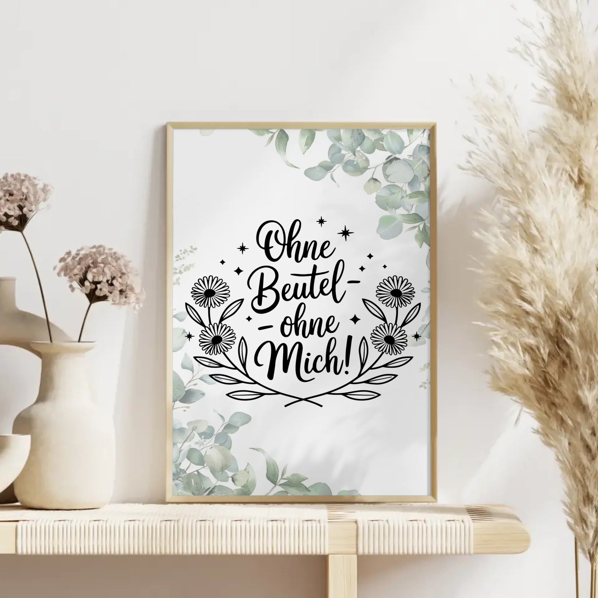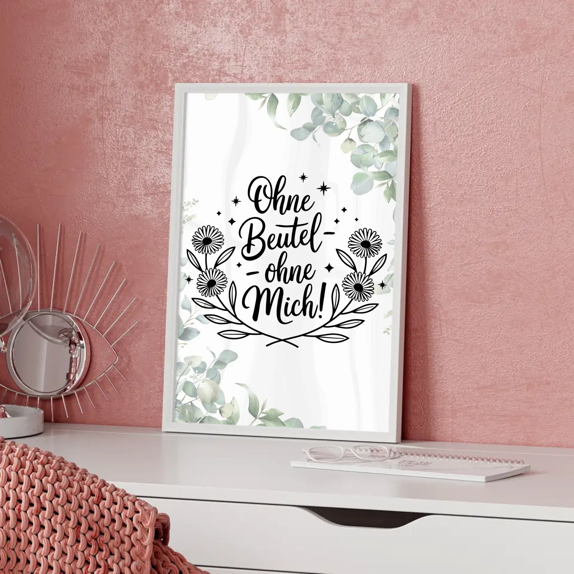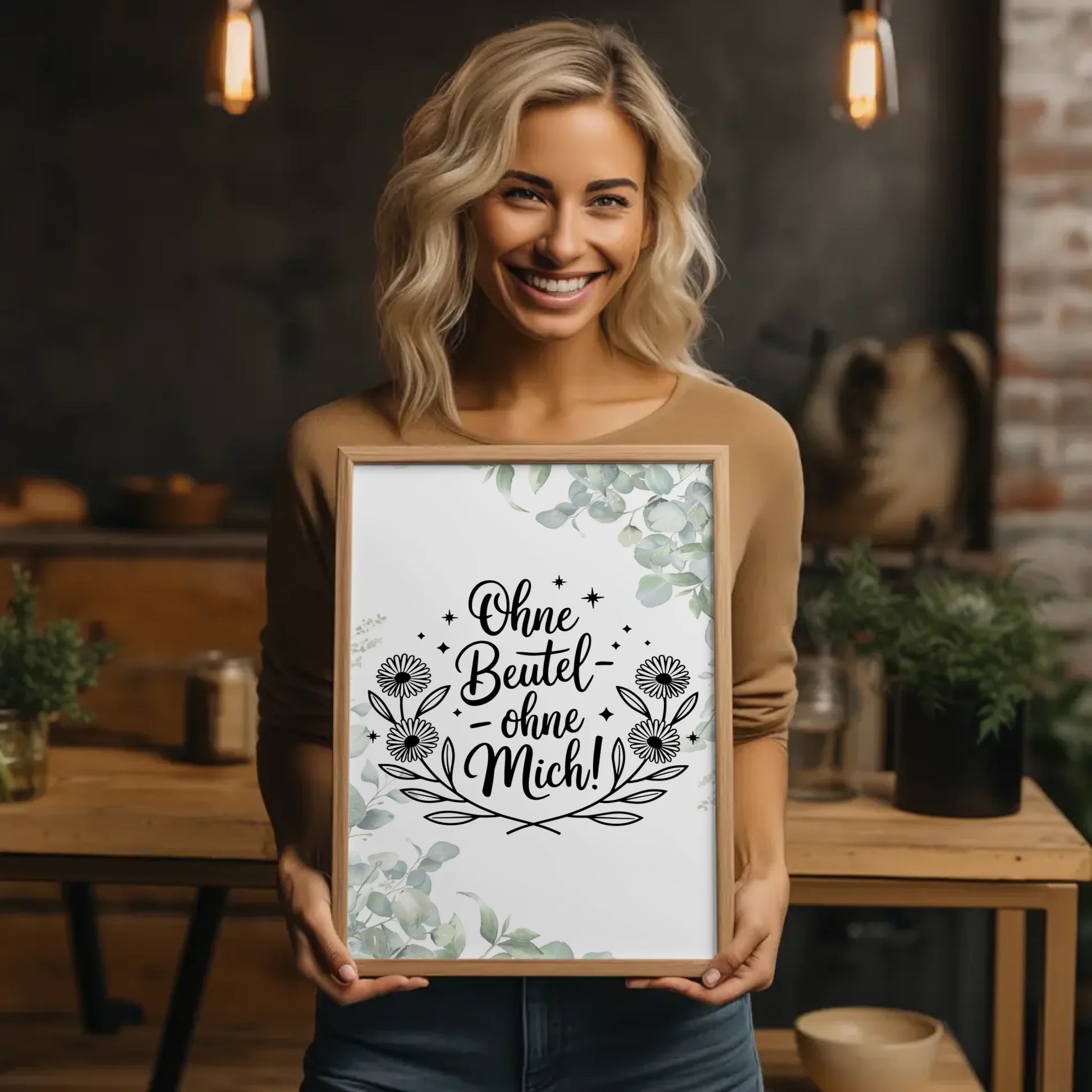 Suchst du nach einem besonderen Geschenk für einen geliebten Menschen oder möchtest du dir selbst eine Freude machen? Unsere Sprüche Poster ohne Beutel - ohne mich! bieten dir die perfekte Möglichkeit, ein ganz persönliches und kreatives Kunstwerk zu erschaffen. Du kannst das Hintergrundbild nach deinen Wünschen gestalten und damit jedem Raum eine individuelle Note verleihen.