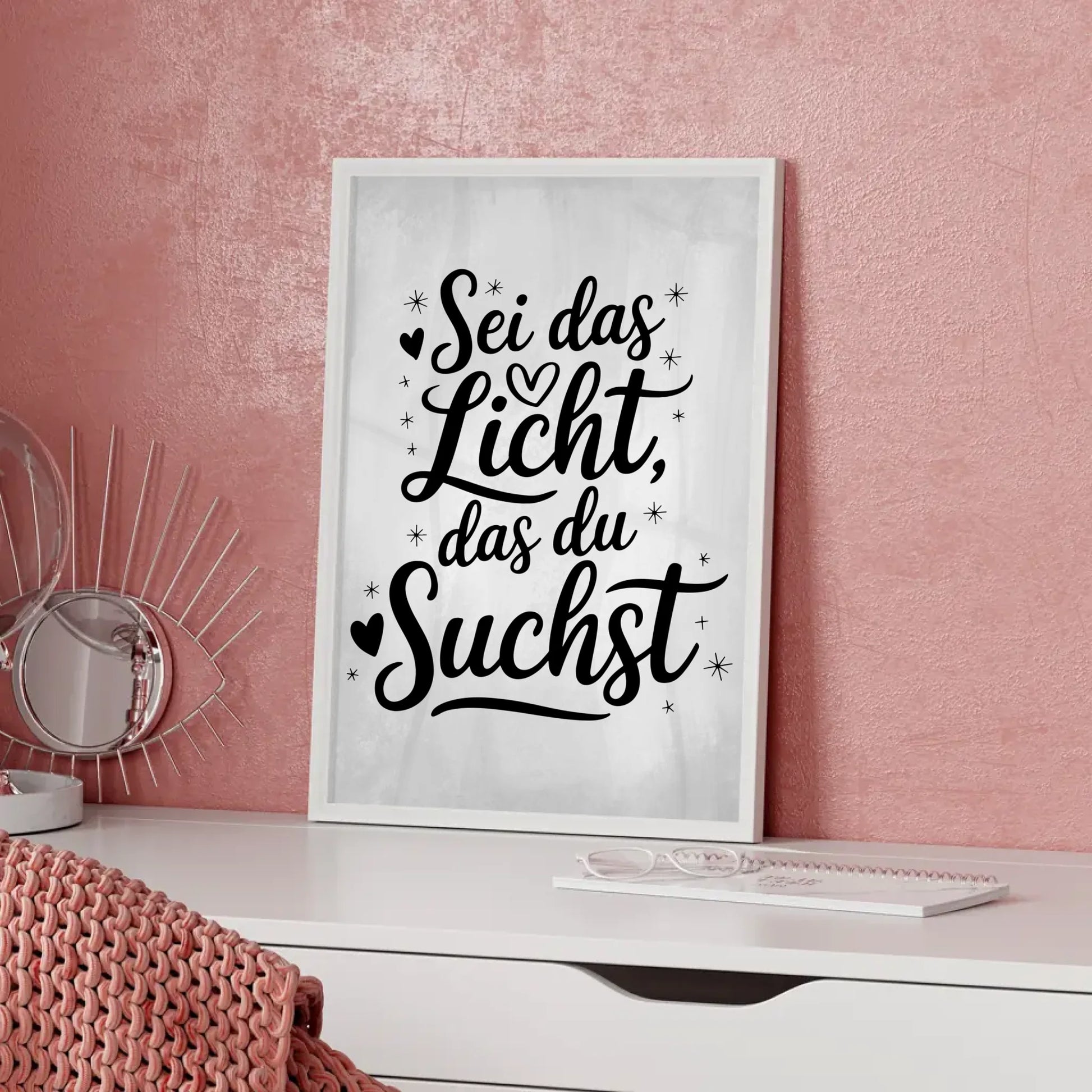 Sprüche Poster Sei das Licht das du suchst personalisiert