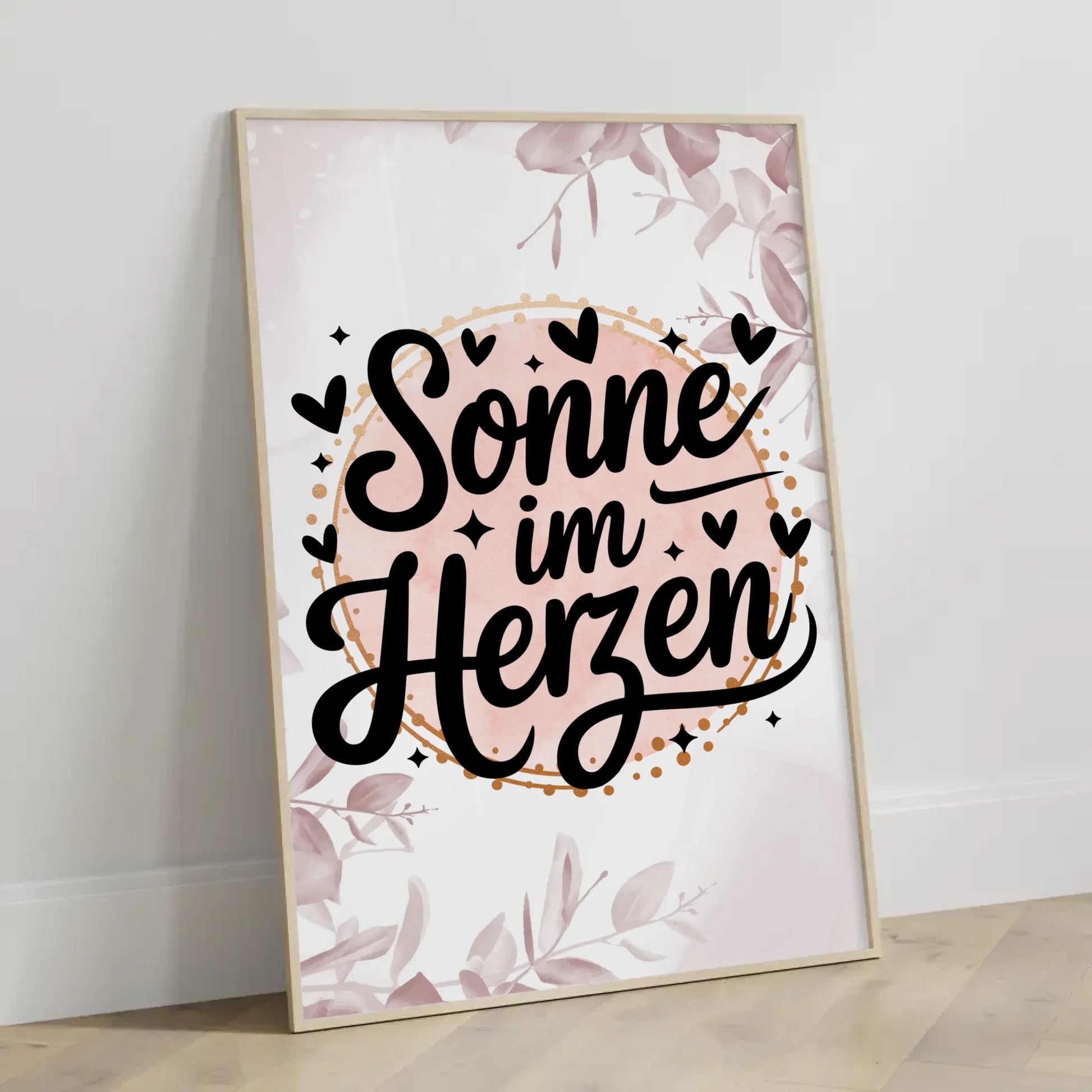 Sprüche Poster Sonne im Herzen für dein Zuhause gestalten