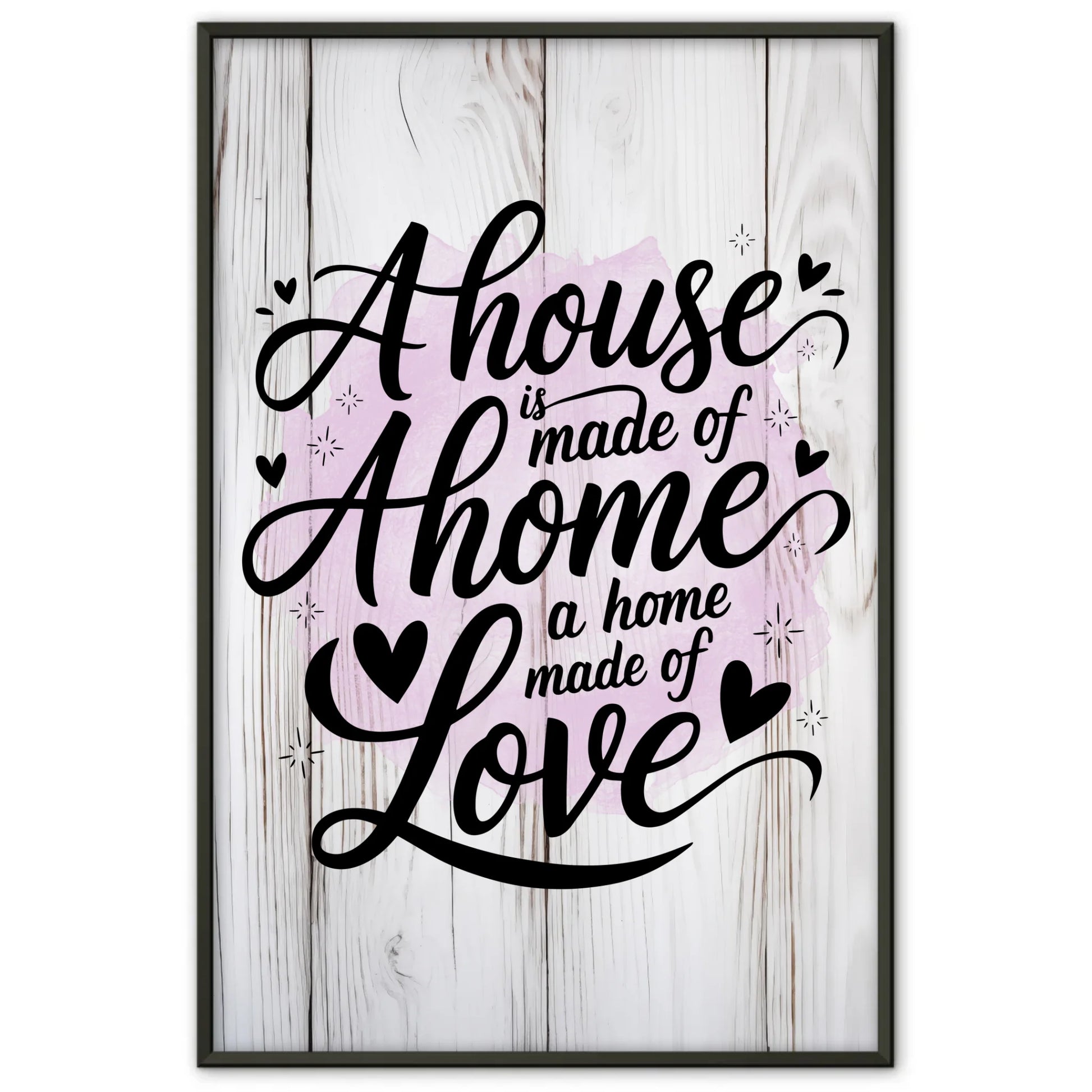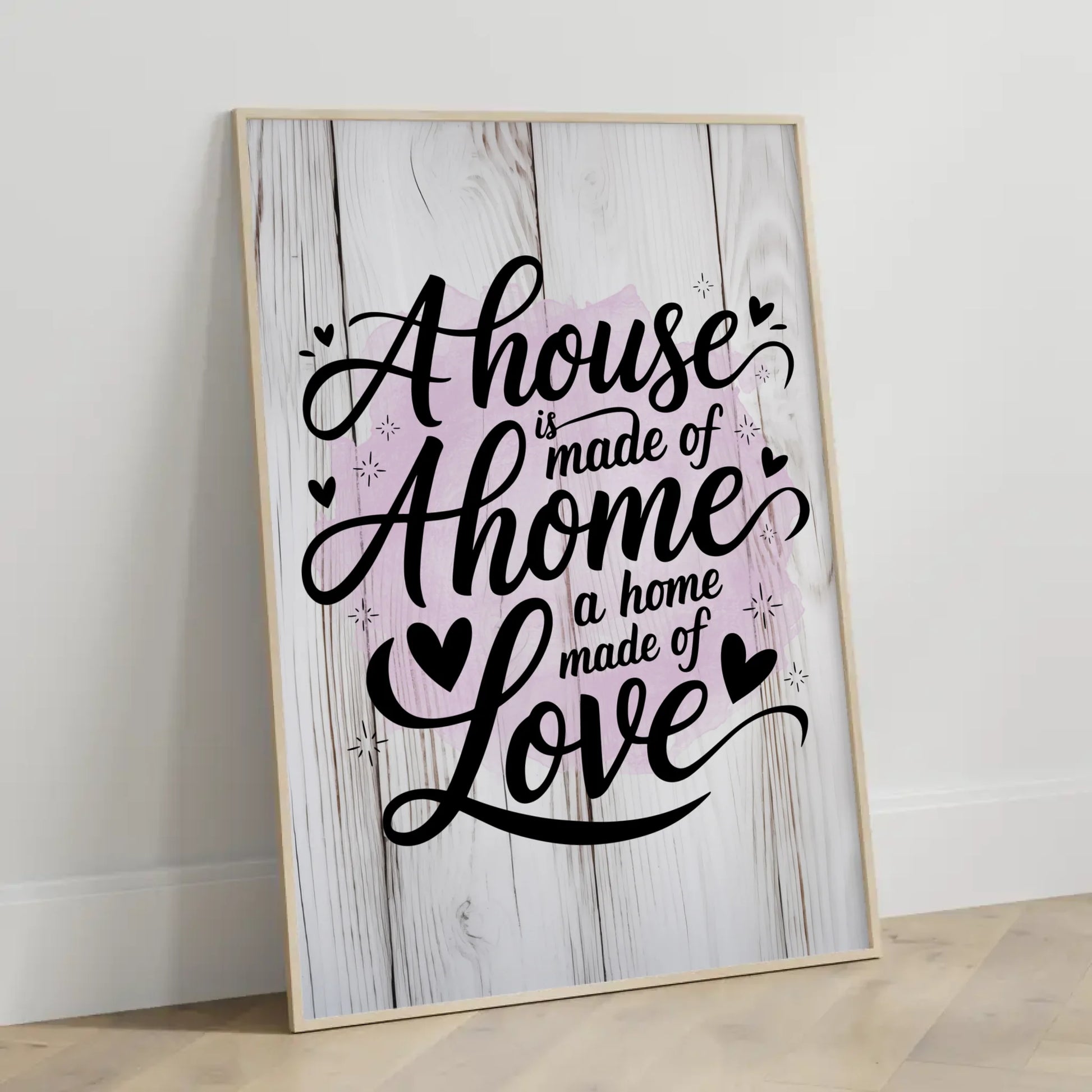 Gestalte Dein eigenes Spruchposter mit dem inspirierenden Text: 'A house is made of walls, a home is made of love'. Dieses besondere Poster mit Spruch verwandelt jeden Raum in ein liebevolles Zuhause und ist die ideale Geschenkidee für jeden Anlass. Egal ob zum Geburtstag, zur Hochzeit oder einfach nur als nette Geste - unser Spruchposter sorgt für Freude und Begeisterung.