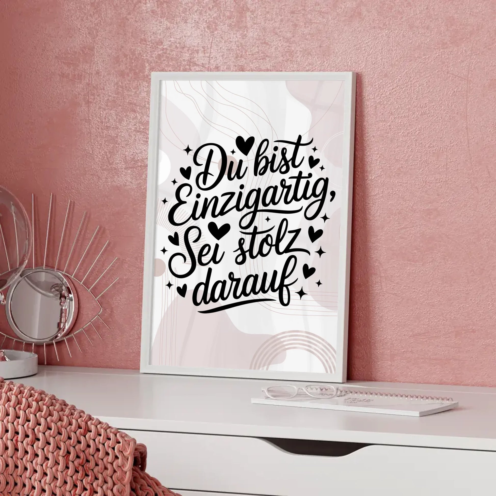 Spruchposter 'Du bist einzigartig, sei stolz darauf' – Die perfekte Geschenkidee