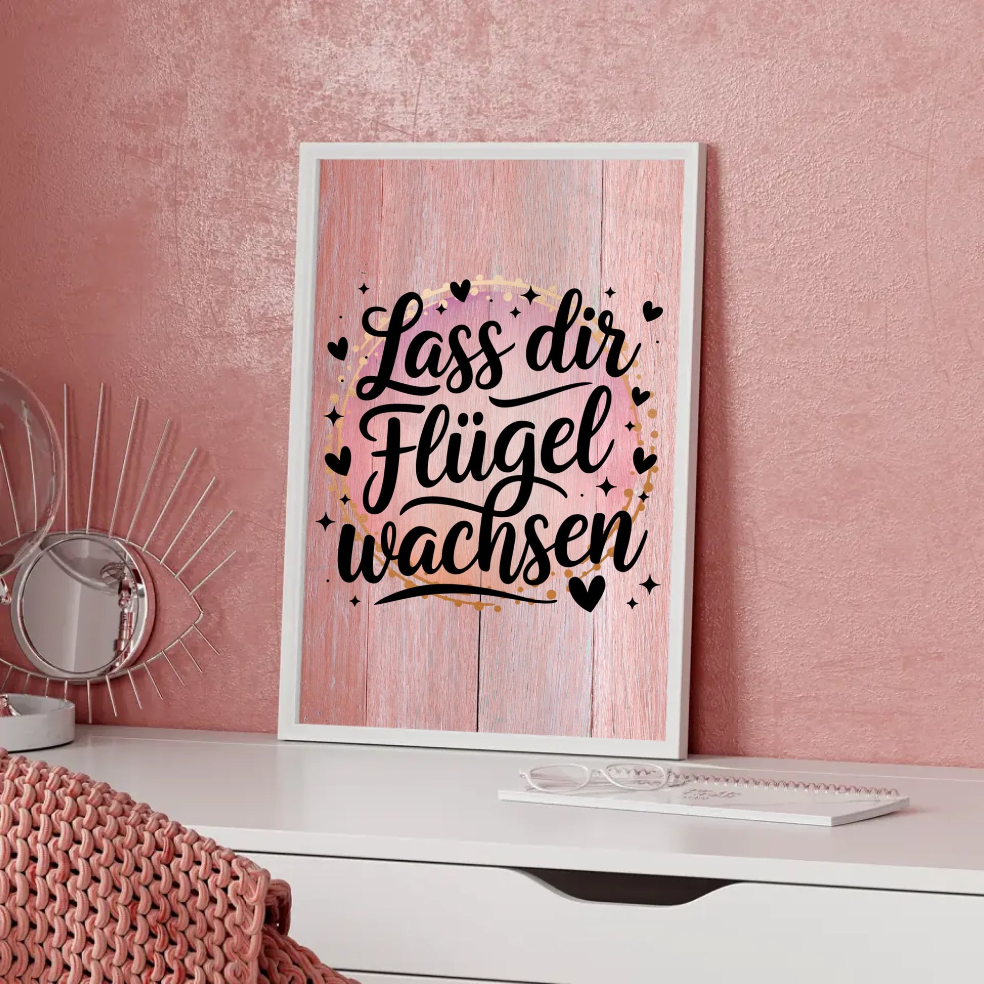 Entdecke das Spruchposter 'Lass dir Flügel wachsen' – jetzt persönlich gestalten!