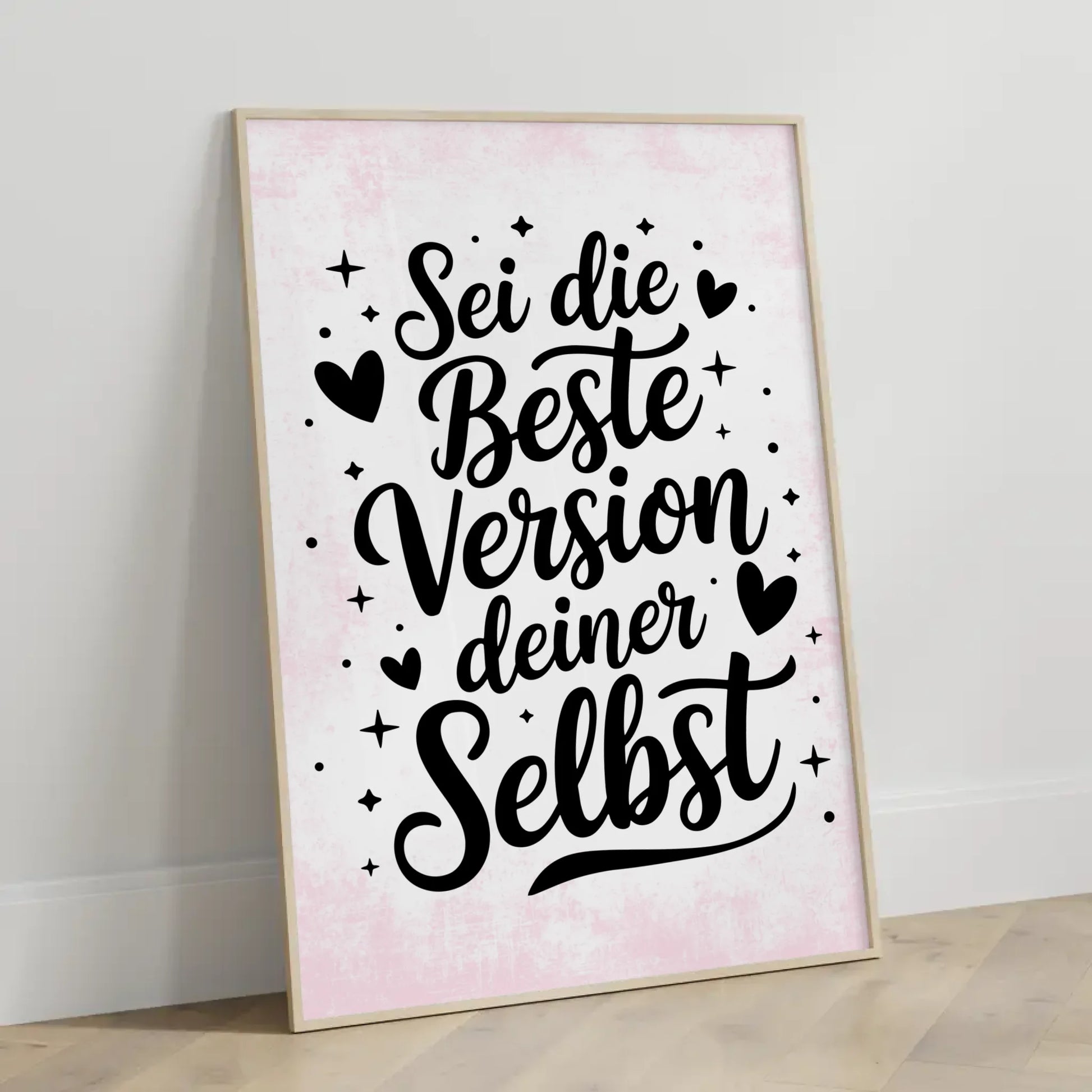 Mach jemandem eine Freude oder belohne dich selbst mit diesem liebevoll gestalteten Geschenk! Das Spruchposter 'Sei die beste Version deiner selbst' ist mehr als nur Dekoration – es ist ein stetiger Begleiter auf dem Weg zu persönlichem Wachstum.