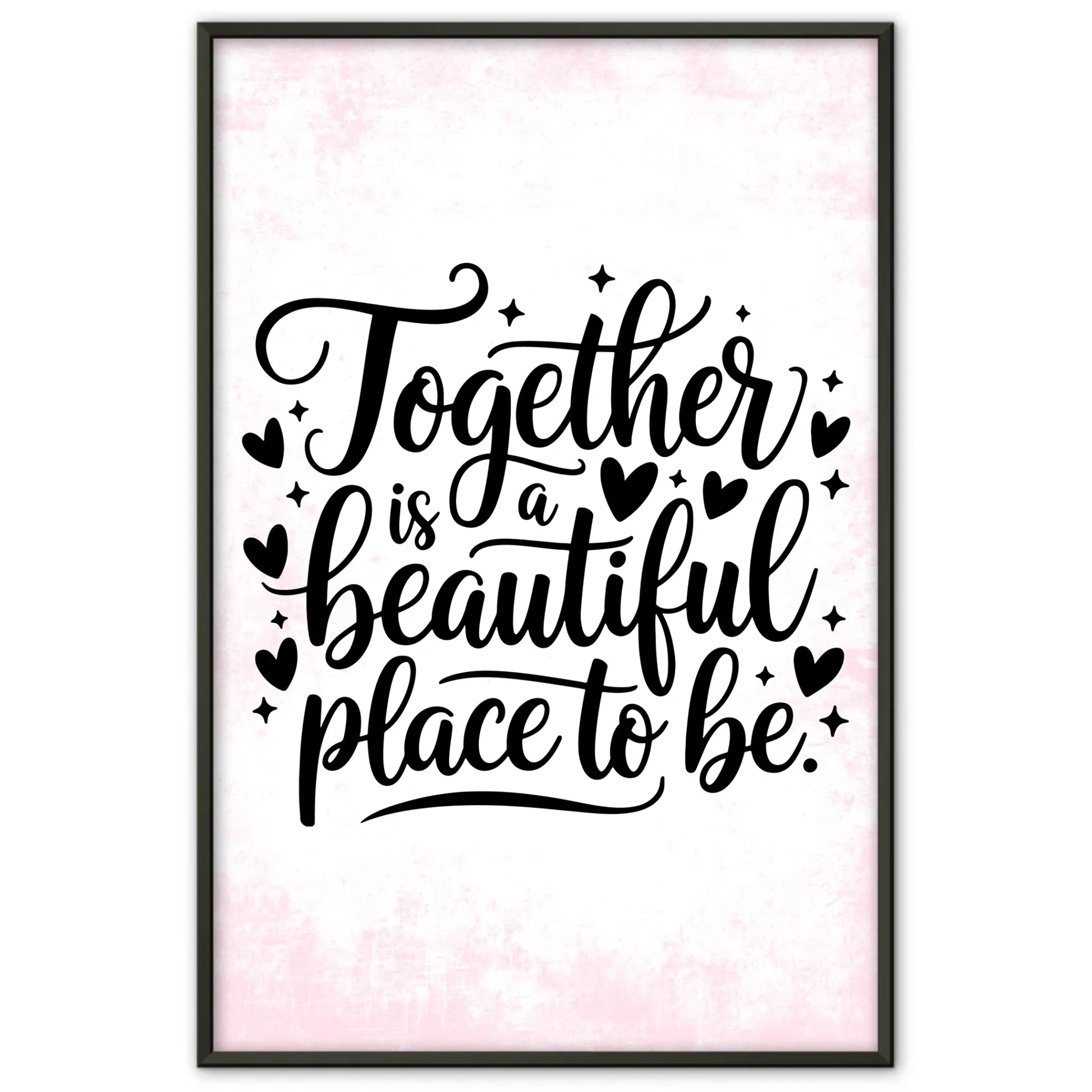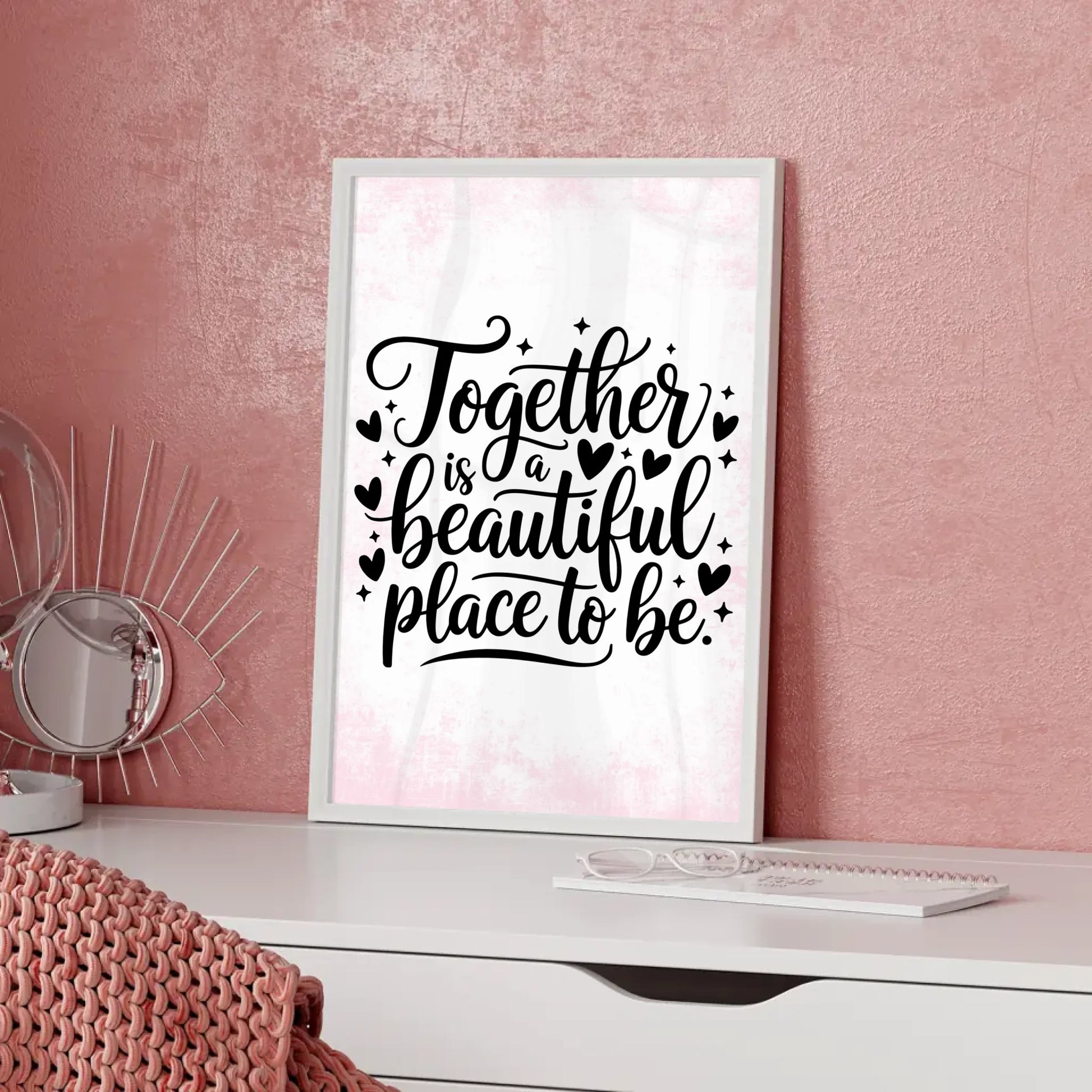 Suchst Du nach einer einzigartigen Geschenkidee, die Herzen berührt? Dann ist unser Spruchposter Together is a beautiful place to be personalisiert genau das Richtige für Dich! Dieses wundervolle Poster mit Spruch zaubert nicht nur ein Lächeln auf die Gesichter Deiner Lieben, sondern lässt sich auch individuell gestalten. Wähle Dein liebstes Hintergrundbild und kreiere damit ein ganz persönliches Kunstwerk! Ideal für jeden Anlass – ob Hochzeit, Geburtstag oder einfach als liebevolle Geste zwischendurch.