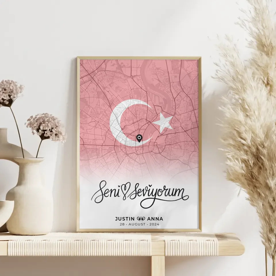 Stadtkarte Paar Poster Urlaub Türkei Seni Seviyorum