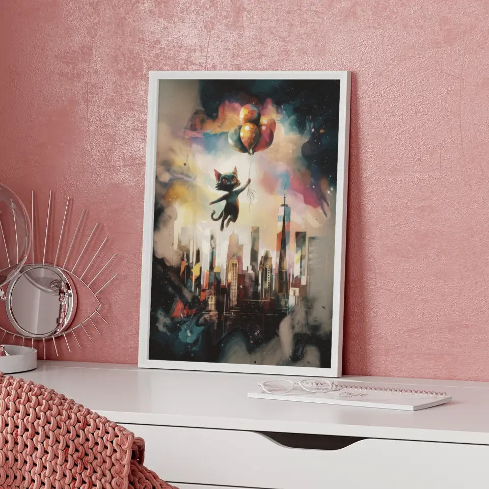 Gestalten Sie Ihre Wände mit diesem außergewöhnlichen Poster, das nicht nur als Dekoration fungiert, sondern auch als Ausdruck von Individualität und Kreativität. Bringen Sie mit dem surrealistischen Poster mit Katze und New Yorker Skyline einen Hauch von Fantasie in Ihr Zuhause und inspirieren Sie sich täglich neu!