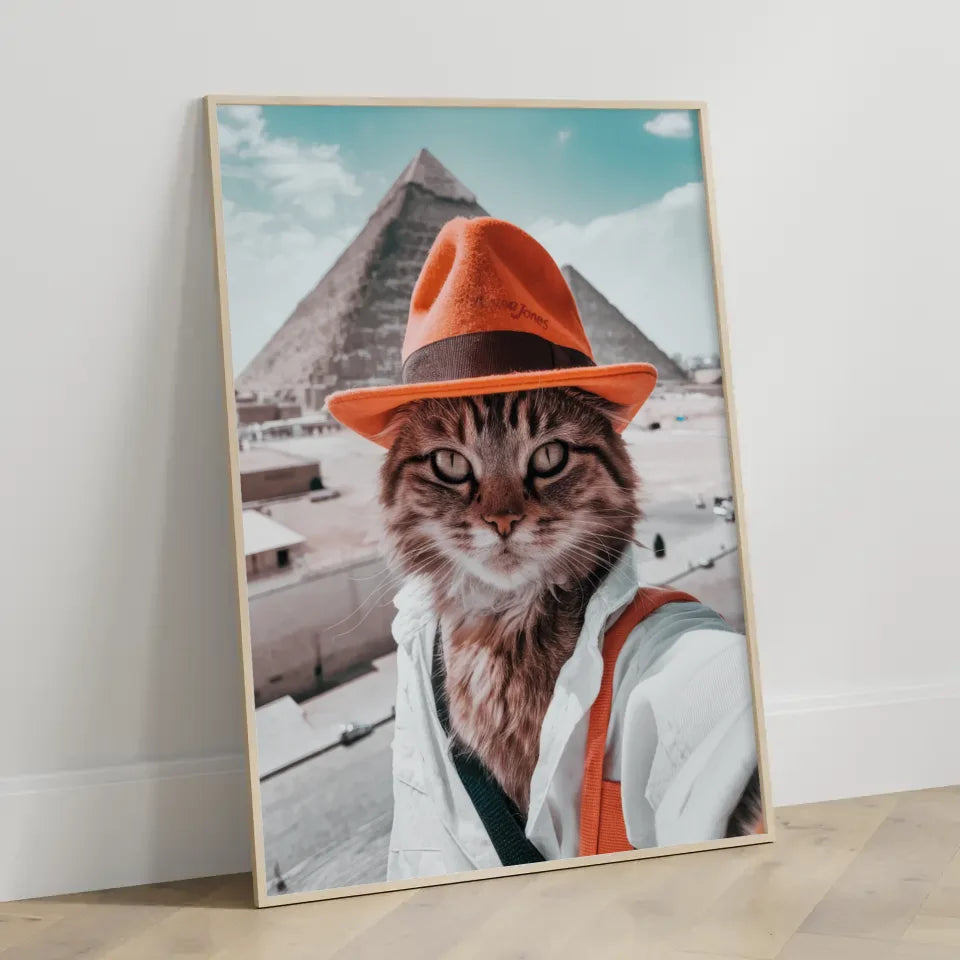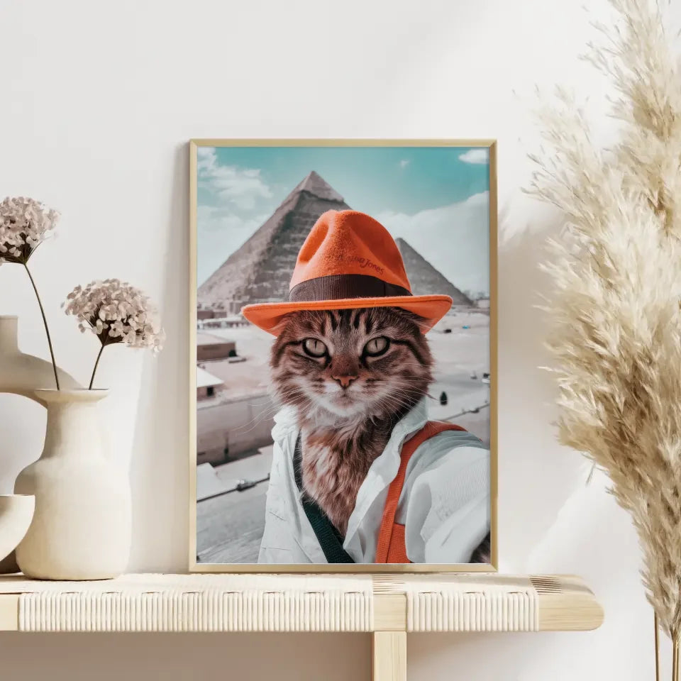 Süße Katze macht Selfie vor Cheops-Pyramide Poster für Katzenliebhaber