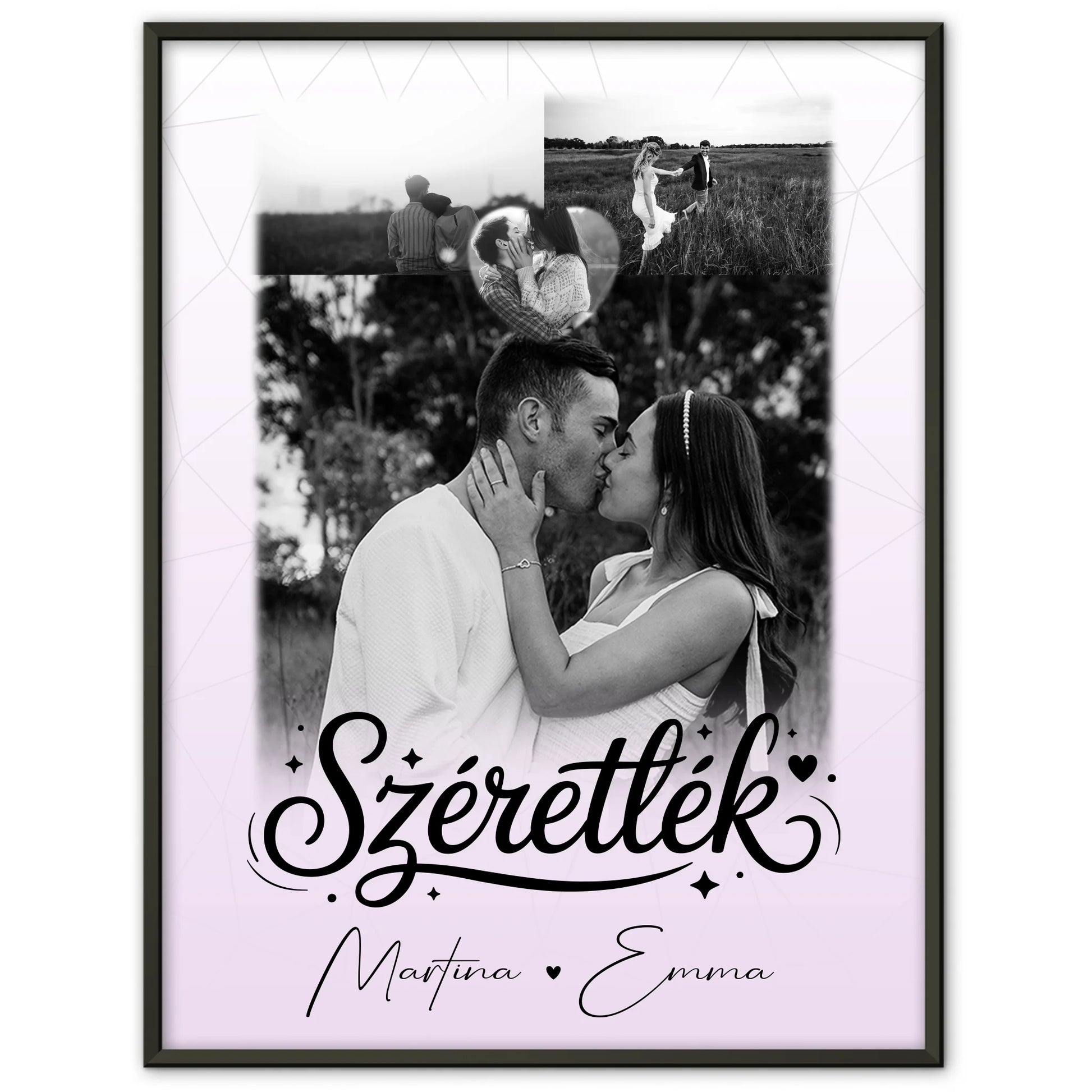 Szeretlek Pärchen Poster Personalisiert mit 3 Fotos und 1 Herz Foto Liebe auf Ungarisch