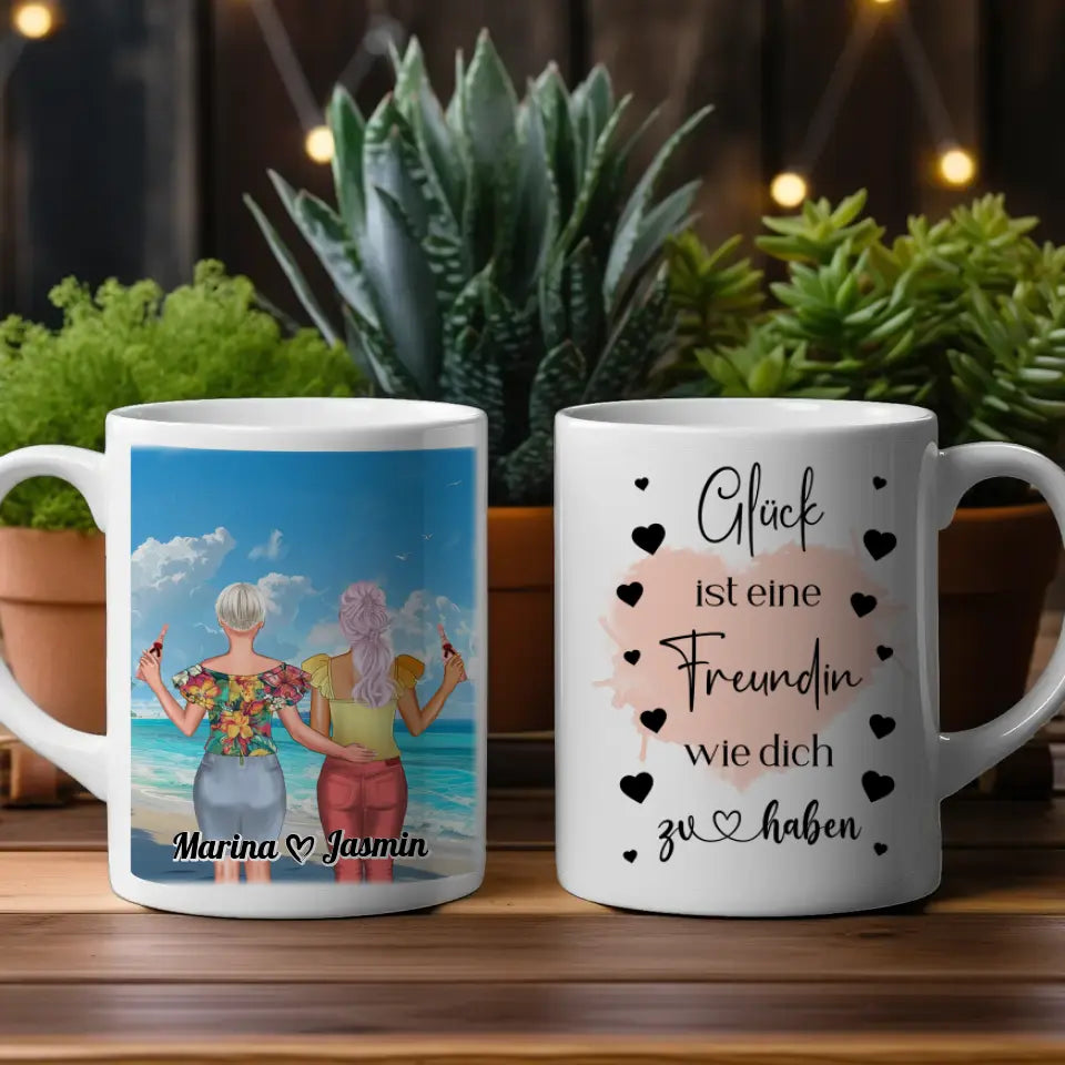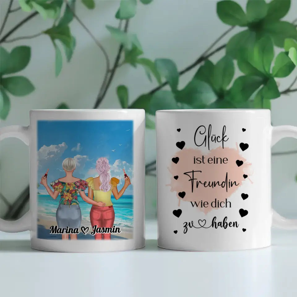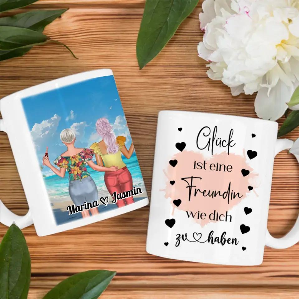 Unsere Tasse Beste Freundin mit Figuren Paradies Insel Personalisiert