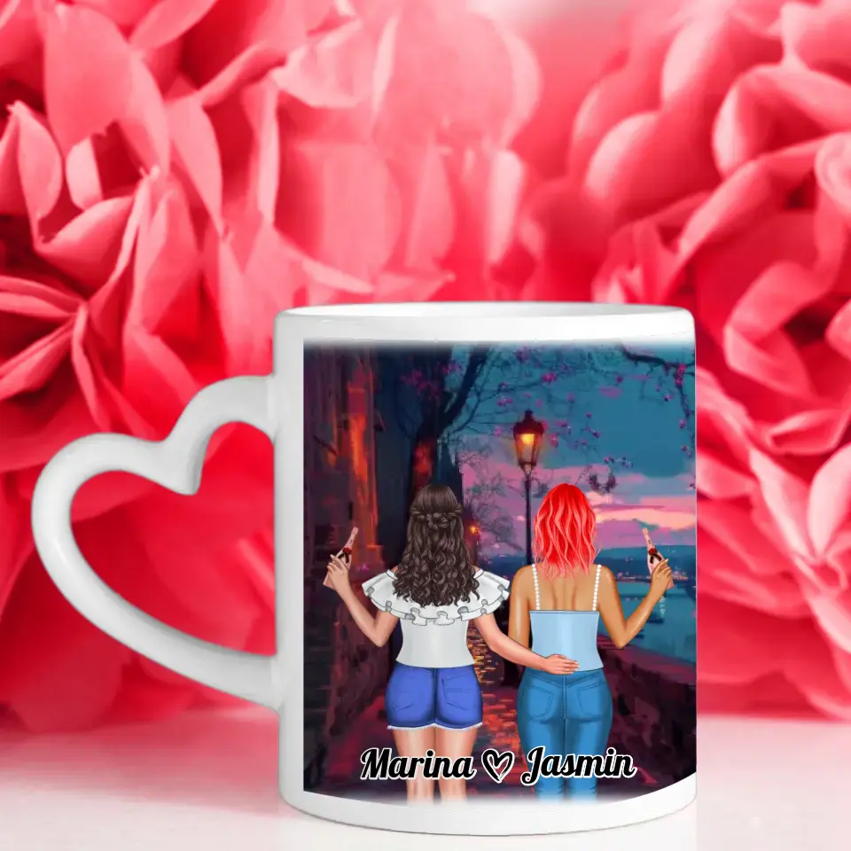 Du kannst bei diesem schönen Design 2 Clipart Freundinnen, Namen, Hintergrundbild & Eigener Spruch oder Wunschtext personalisieren.
