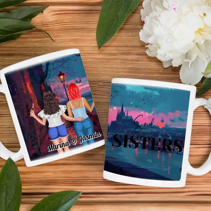Du möchtest mal wieder etwas einzigartiges verschenken? unsere Tasse Freundinnen Mit Namen Kölner Dom Dämmerung Soul Sisters das perfekte personalisierbare Geschenk.