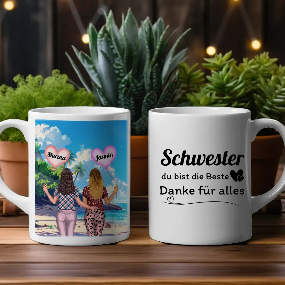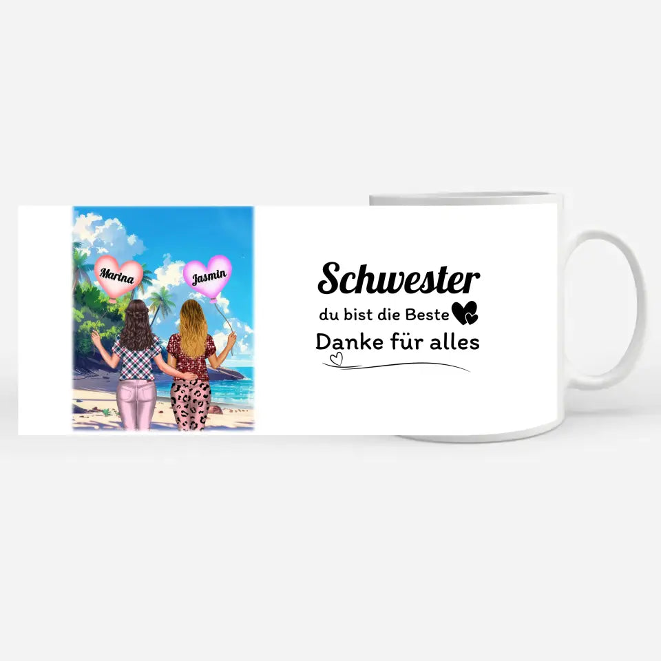 Diese personalisierte Tasse Basic ist perfekt für Schwestern .Also perfekt zum Geburtstag, zu Weihnachten oder einfach als nette Aufmerksamkeit .