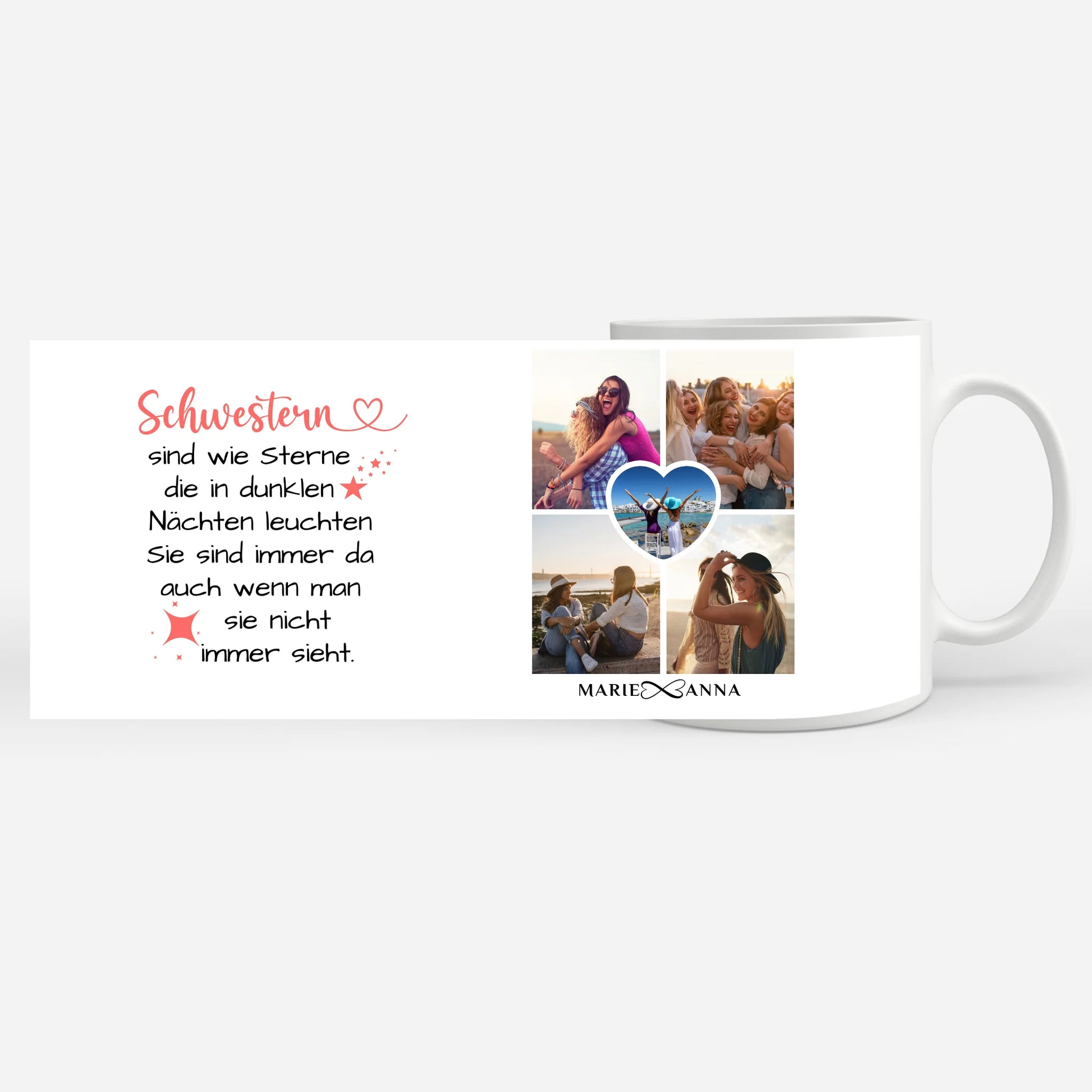 Tasse für Schwester Sind wie Sterne mit 5 Fotos