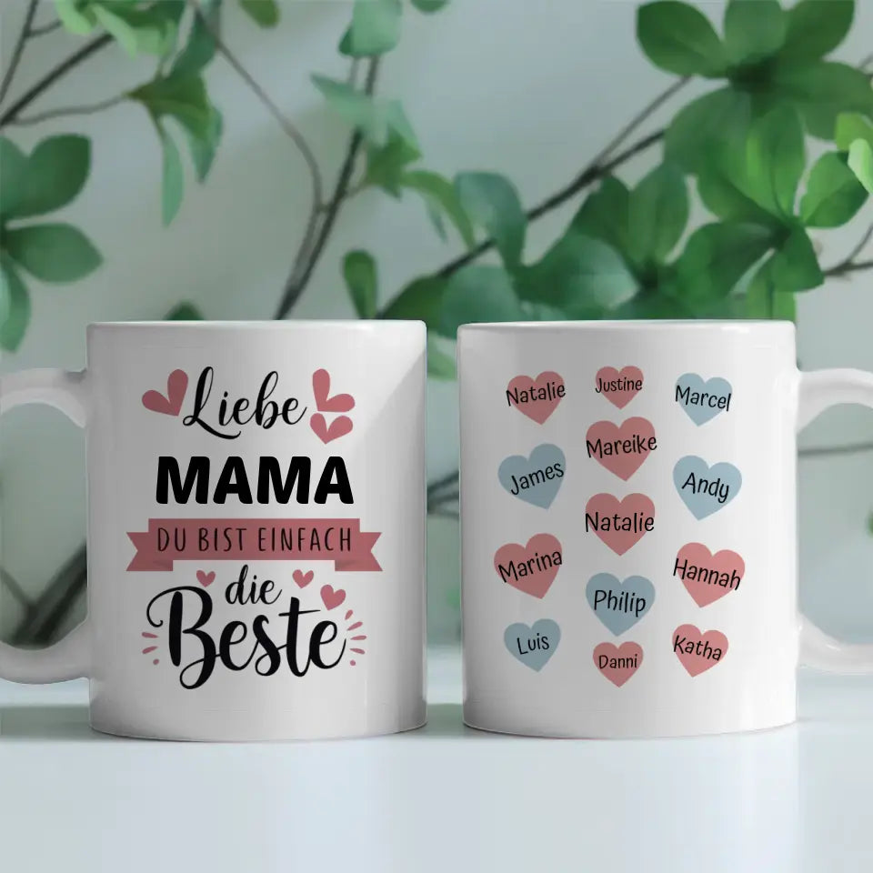 Tasse Mama ist die Beste personalisiert mit 13 Namen