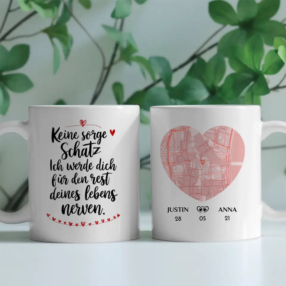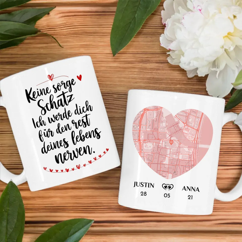 Unsere Tasse personalisiert für Paare Keine Sorge Schatz Stadtkarte