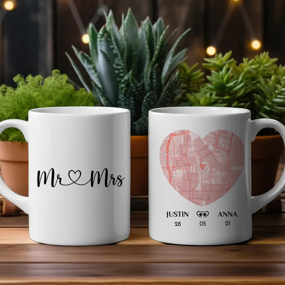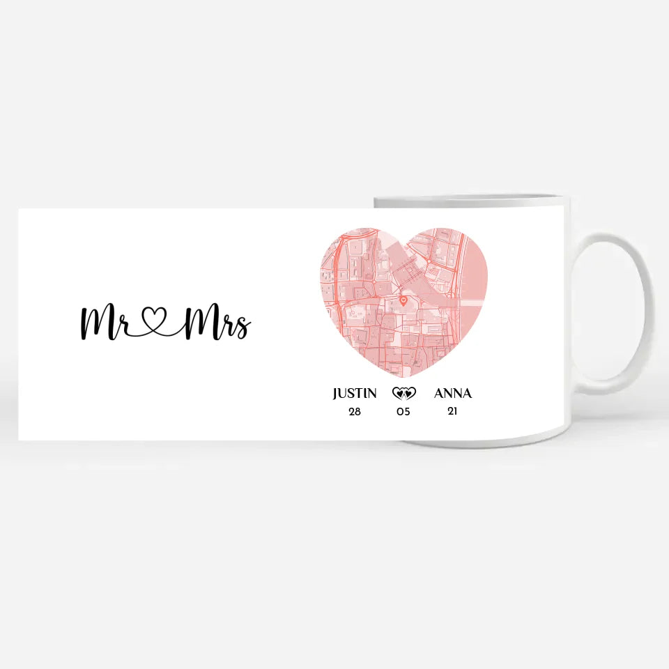 Tasse personalisiert für Paare Mr & Mrs Stadtkarte