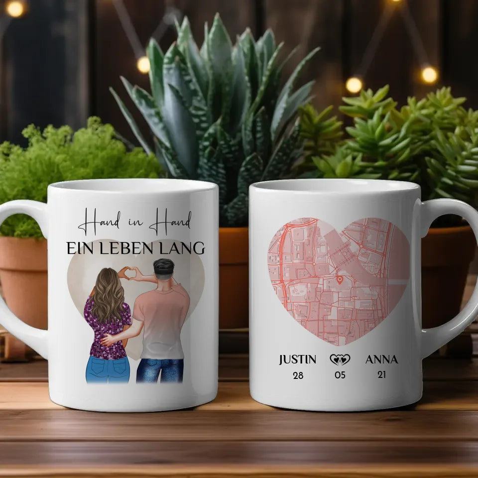 Tasse personalisiert für Paare Stadtkarte Hand in Hand Paar als Cliparts