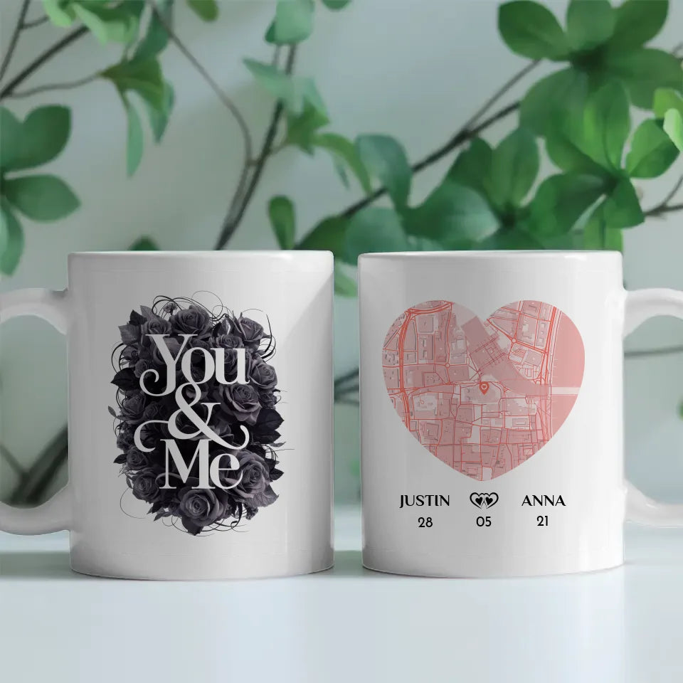 Du möchtest mal wieder etwas einzigartiges verschenken? Unsere Tasse personalisiert für Paare You and Me Stadtkarte ein schickes personalisiertes Geschenk.