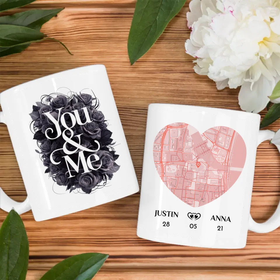 Tasse personalisiert für Paare You and Me Stadtkarte