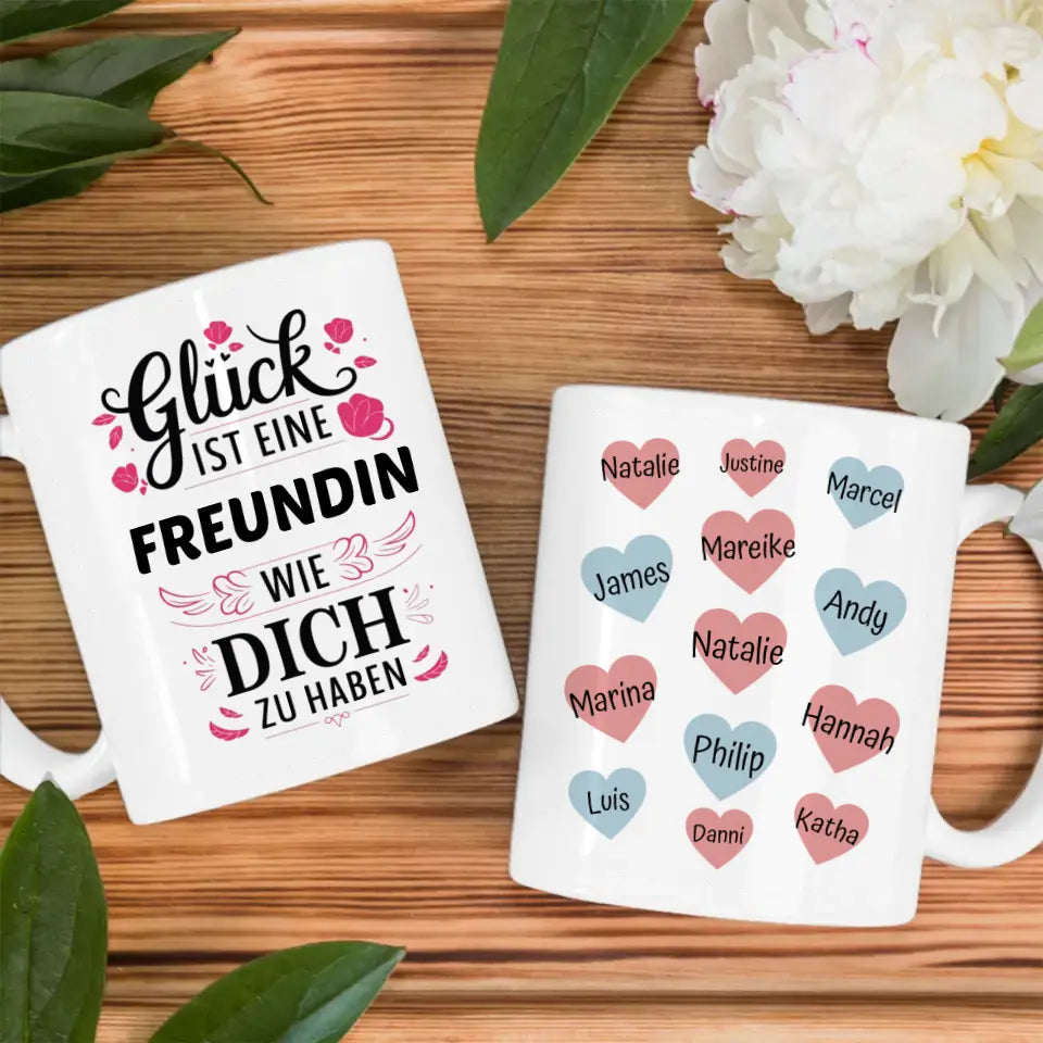 Unsere Tasse Personalisiert Glück ist eine Freundin wie Du mit 13 Namen
