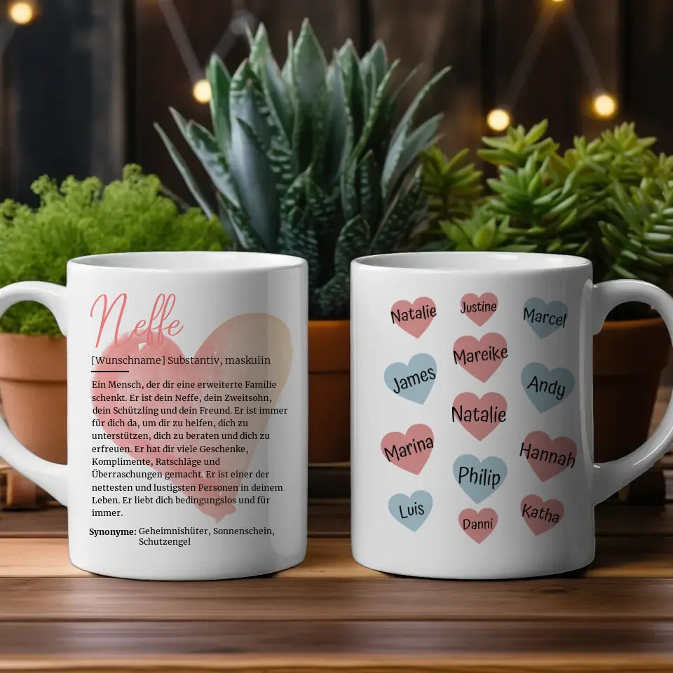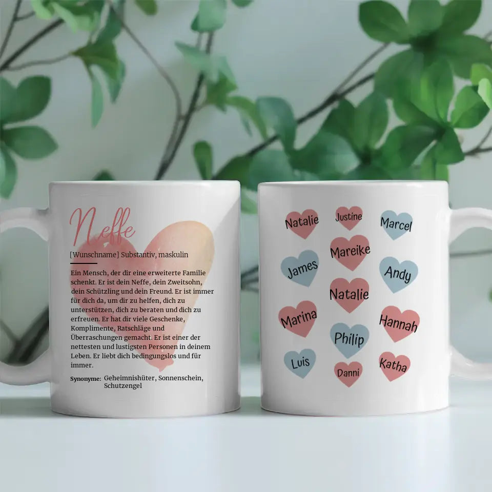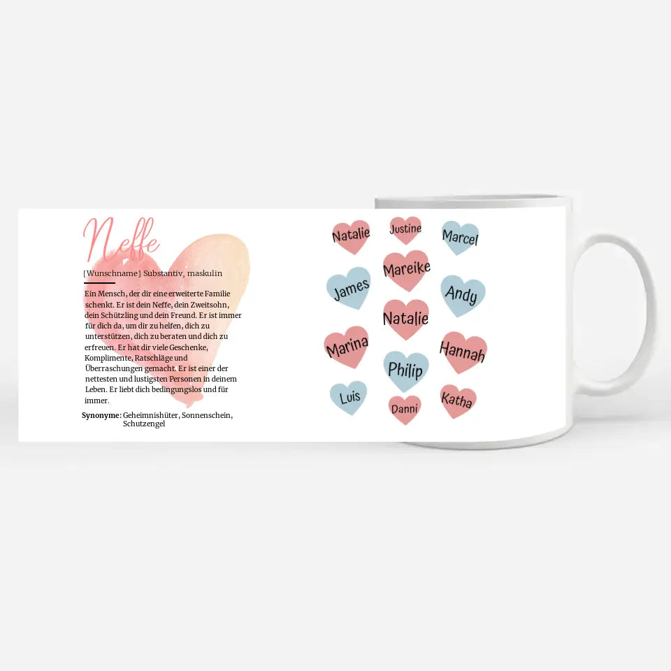 Tasse personalisiert Neffe Schöne Definition mit Namen auf Herzen