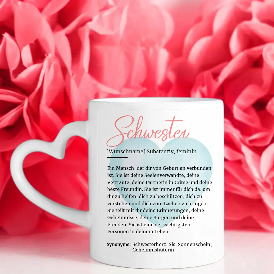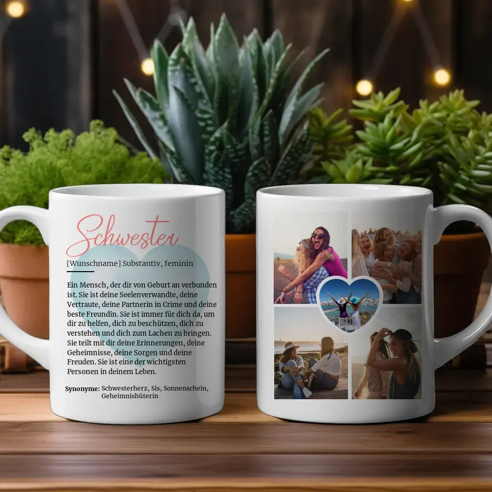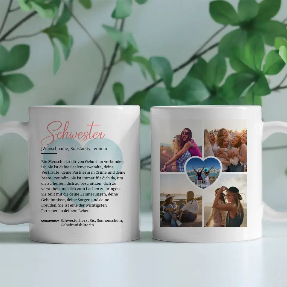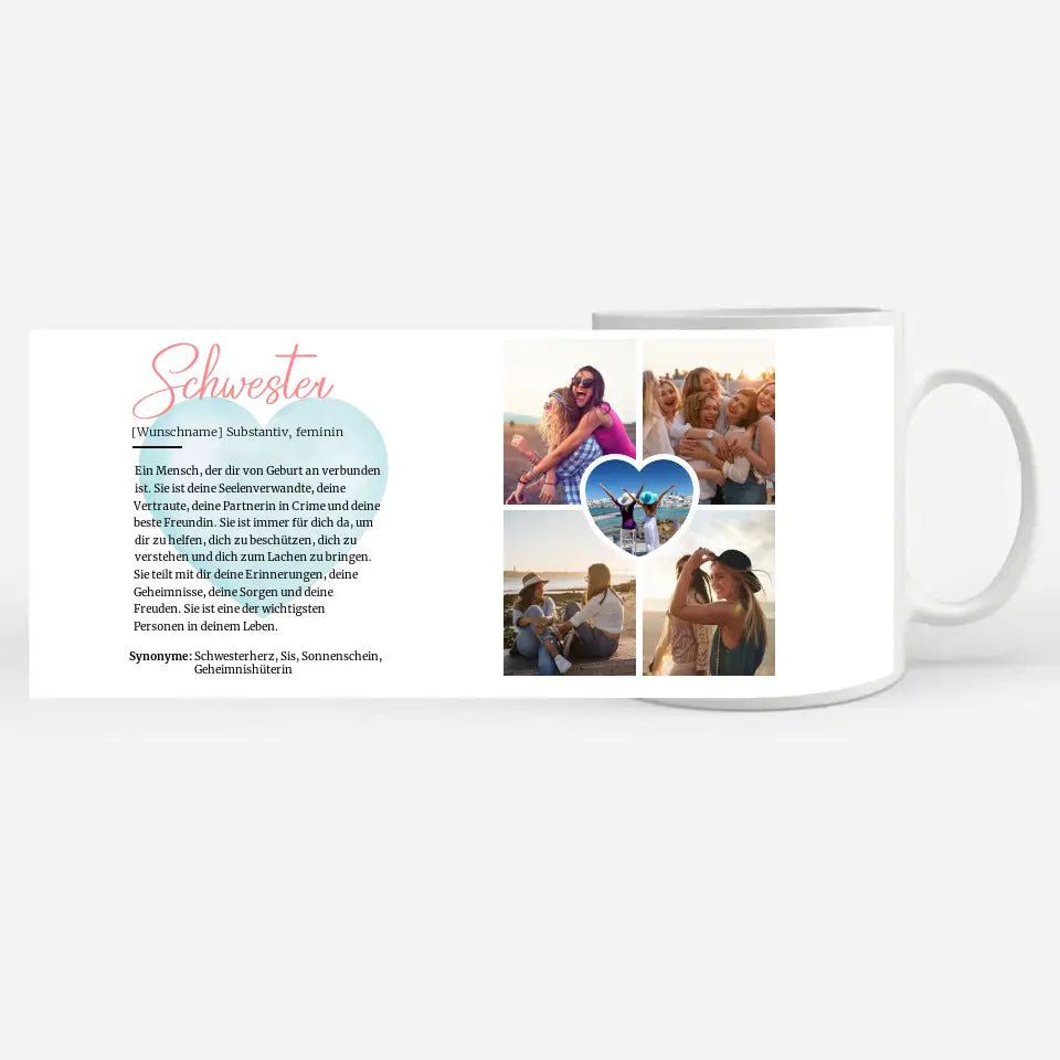 Tasse personalisiert Schwester Schöne Definition mit Fotos und Name