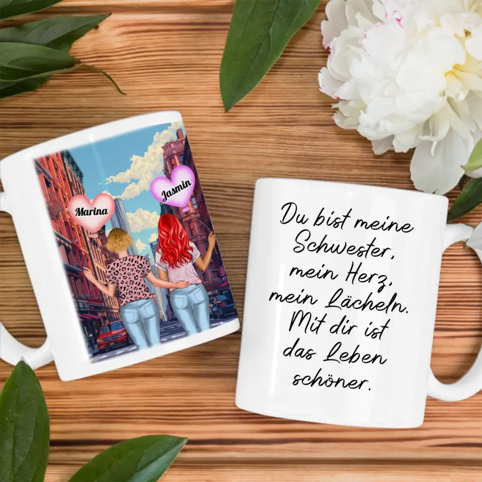 Diese personalisierte Tasse Basic ist perfekt für Schwestern .Also perfekt zum Geburtstag, zu Weihnachten oder einfach als nette Aufmerksamkeit .