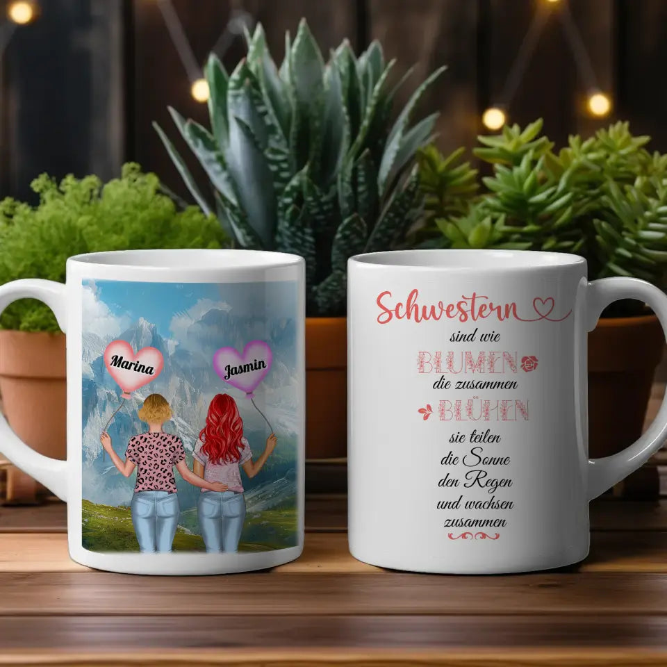 Tasse Schwesterherz Schwestern sind wie Blumen Disko Party