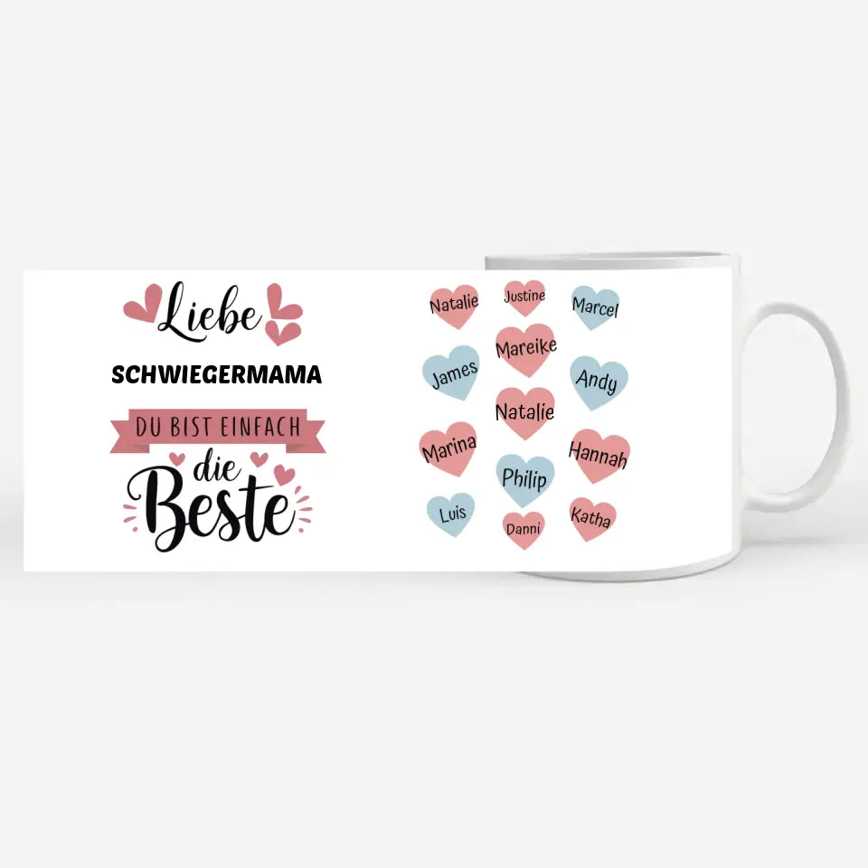 Unsere Tasse Schwiegermama ist die Beste personalisiert mit 13 Namen
