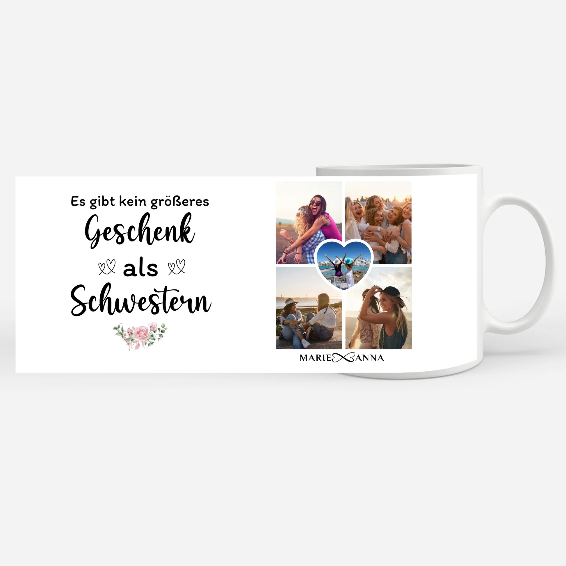 Du möchtest etwas einzigartiges verschenken? Dann ist Unsere Tassen Geschenk für Schwester Kein größeres Geschenk mit 5 Fotos ein tolles personalisiertes Geschenk.