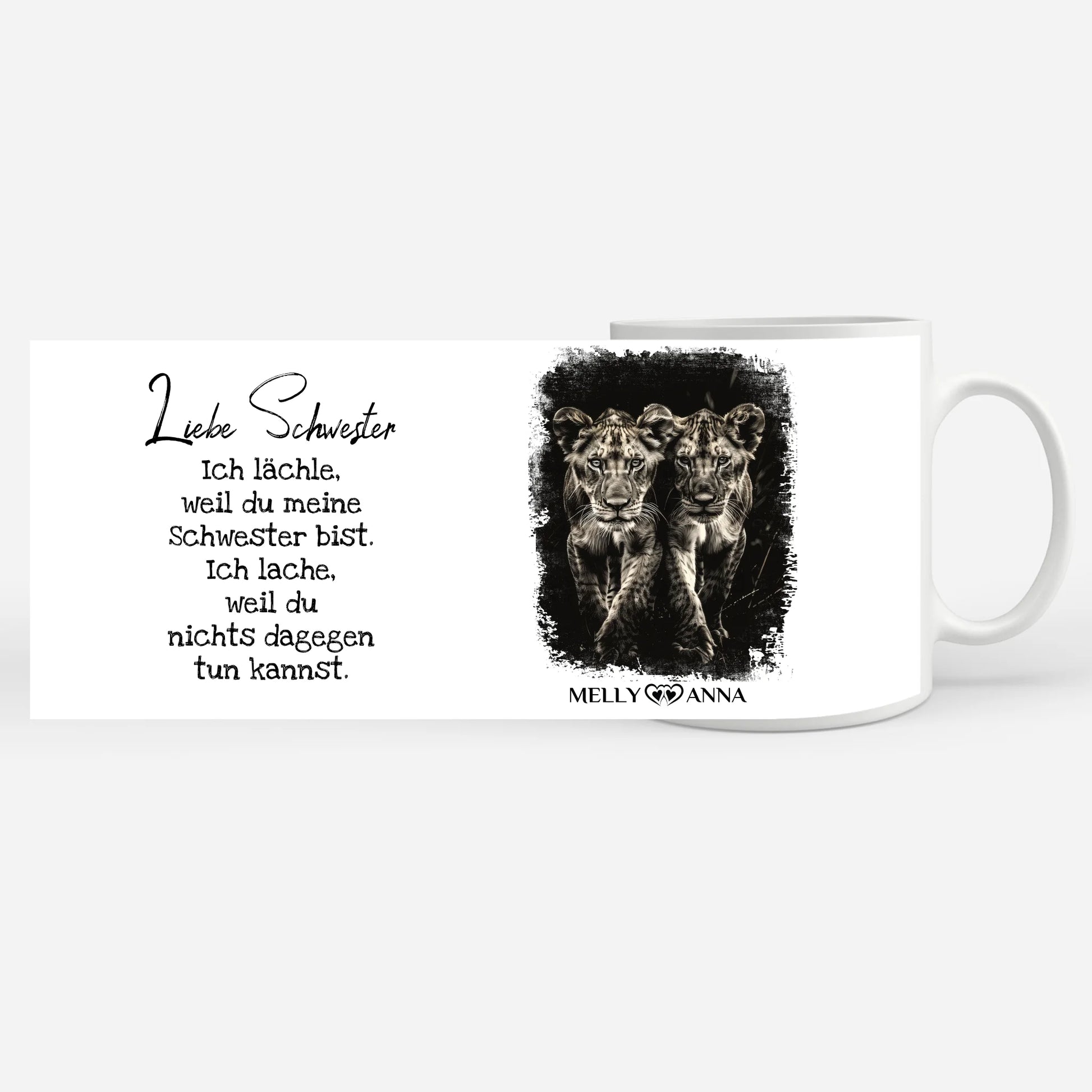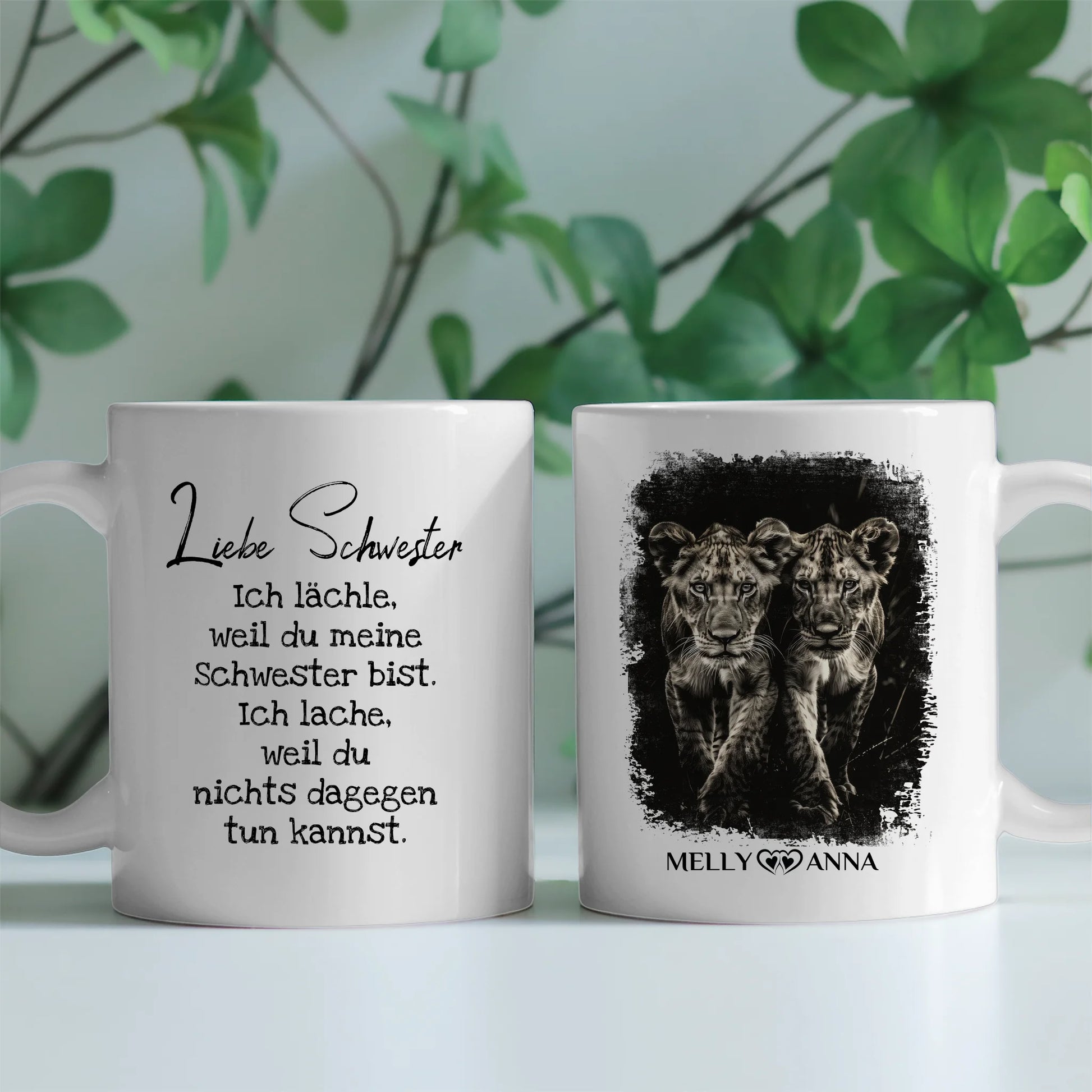 Unsere Tassen Geschenk für Schwester Löwen Bild Ich lächele