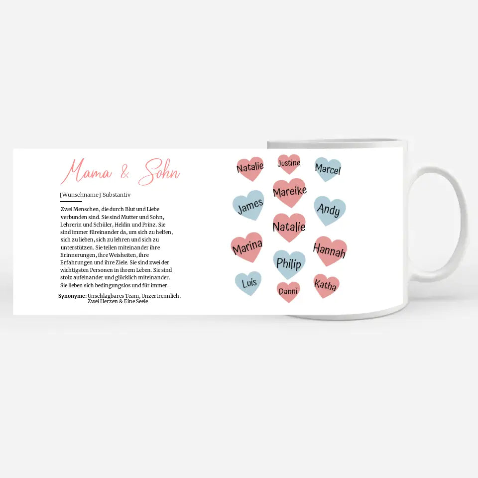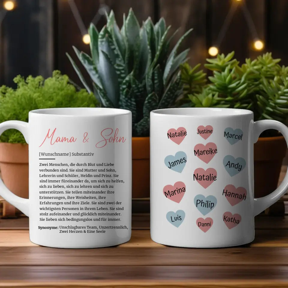 Tassen Geschenk Personalisiert Mama & Sohn Definition mit 13 Namen