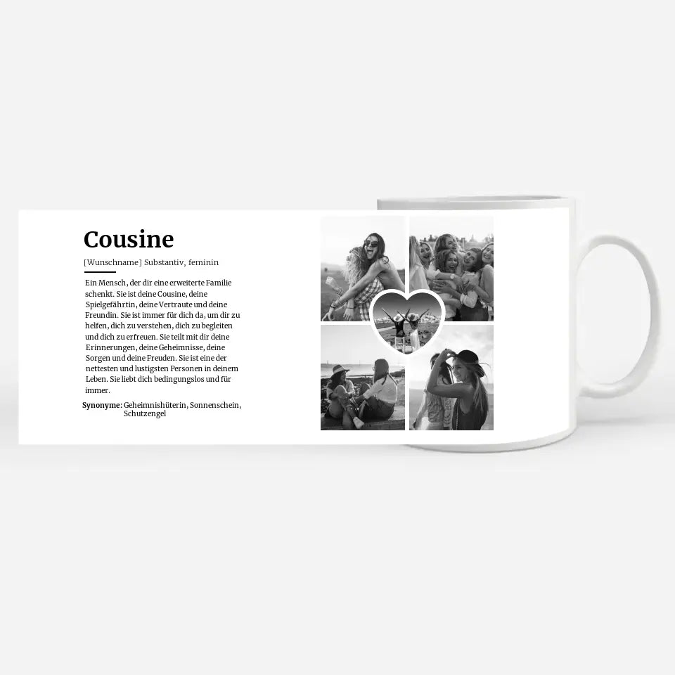 Tassen Geschenk Personalisiert Schöne Definition Cousine Mit Name und 5 Fotos