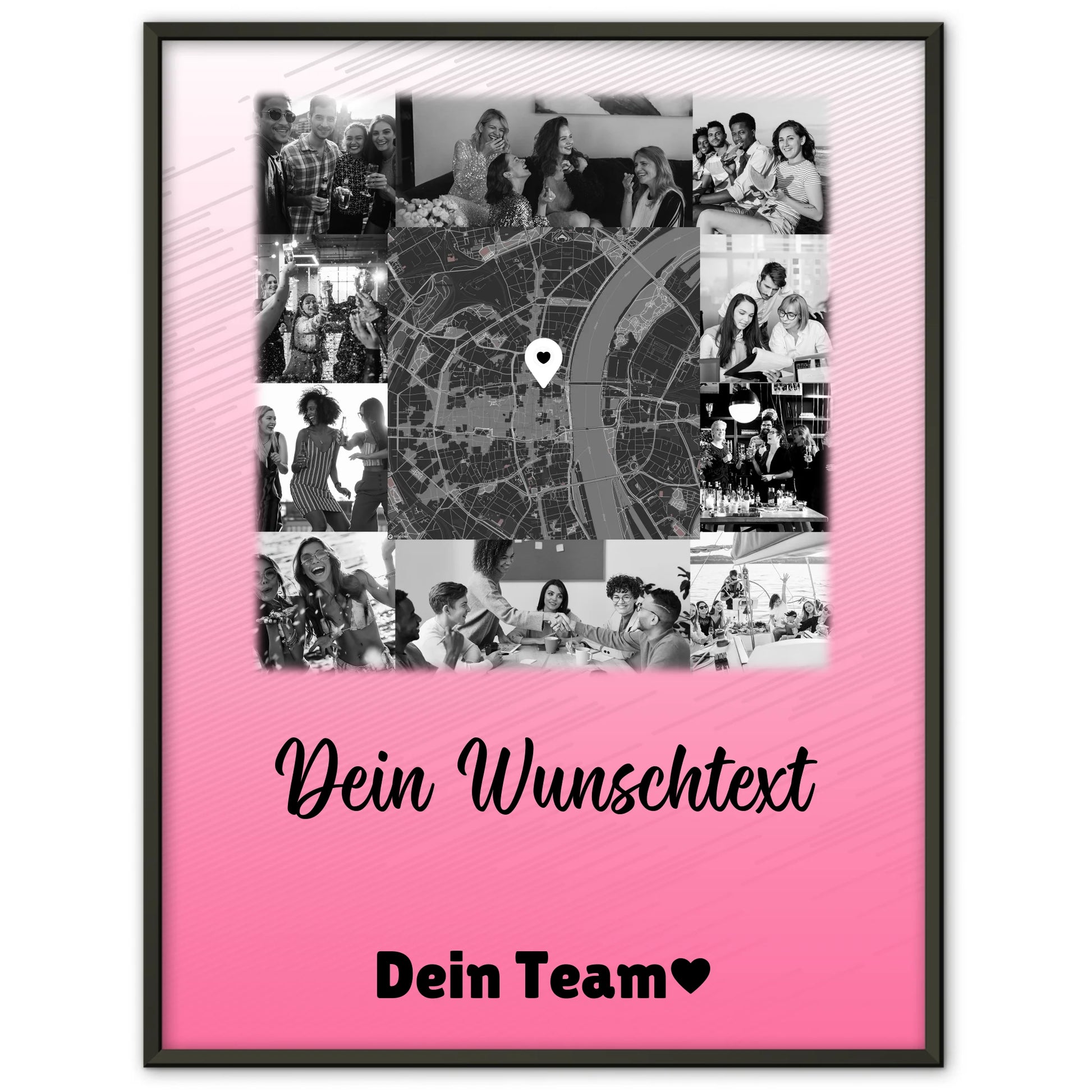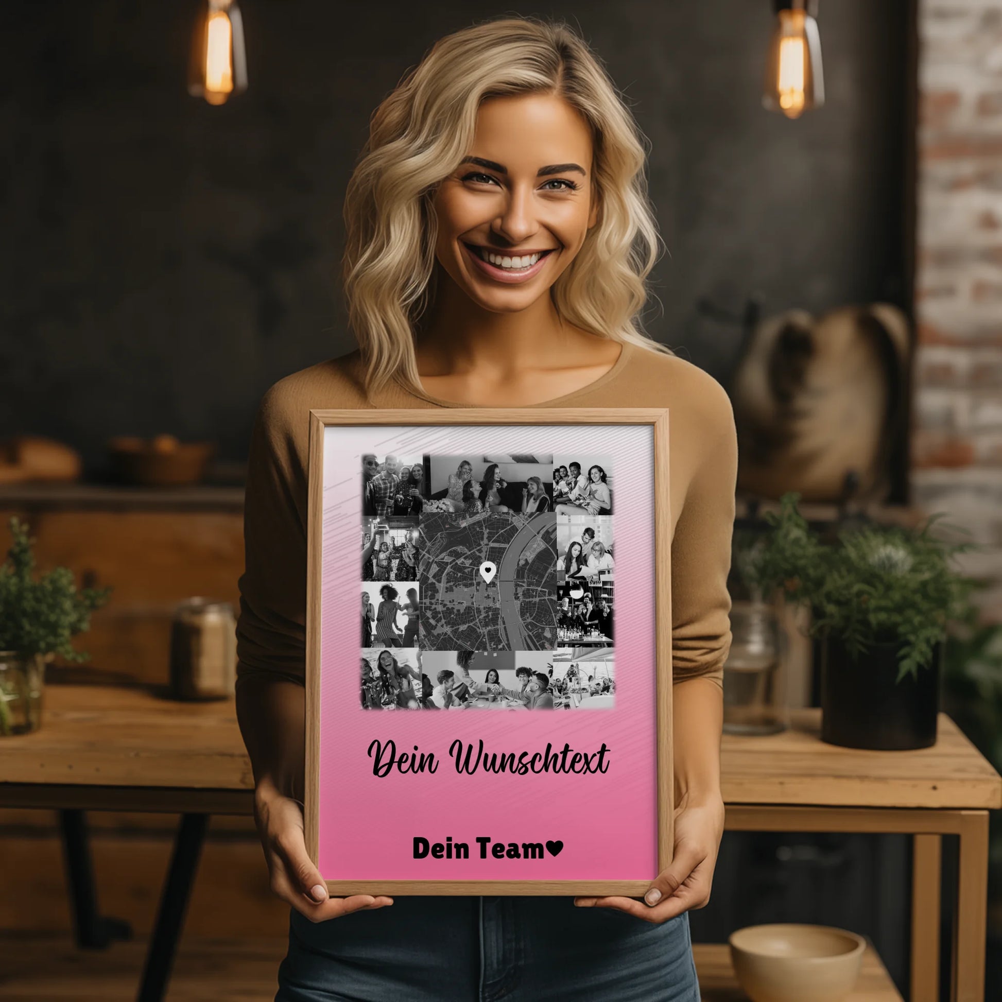 Team Abschied Poster personalisiert mit 10 Fotos Karte in der Mitte und Wunschtext